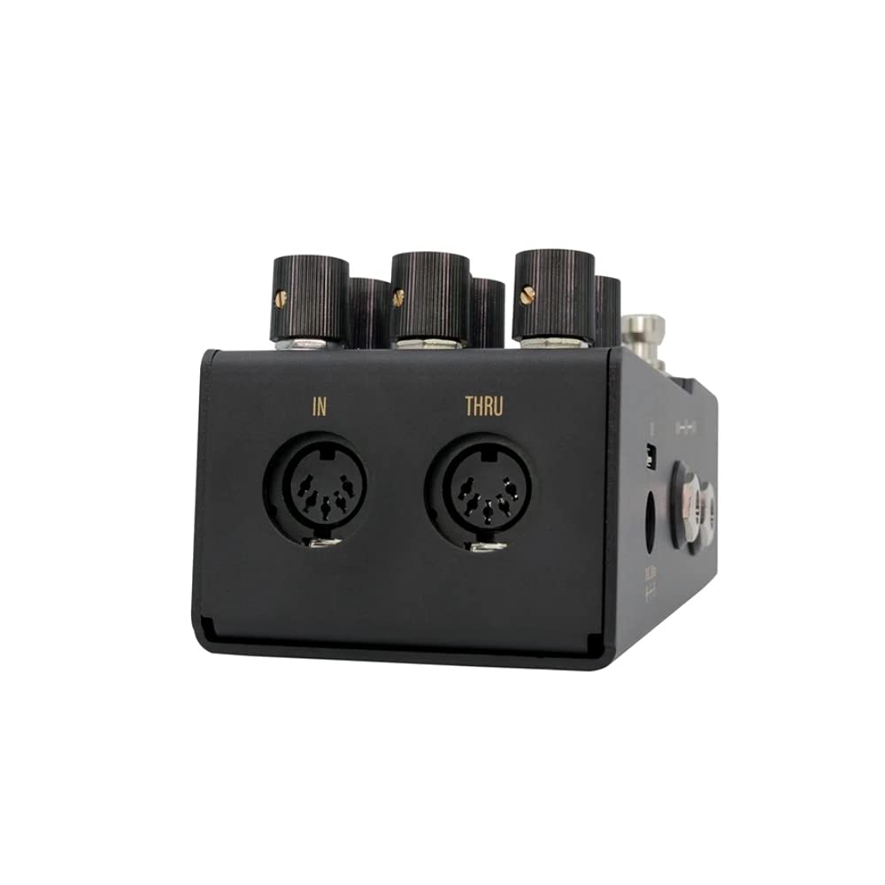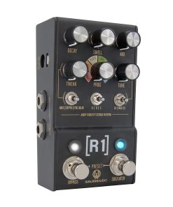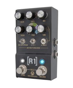 El R1 es un reverb multi-función extremadamente potente y versátil que puede pasar rápidamente de sonidos de habitación íntimos a lavados masivos de euforia experimental con seis programas personalizados de calidad de estudio – Spring, Hall, Plate, BFR, RFRCT y Air. Cada programa puede ajustarse y guardarse en uno de los nueve presets a bordo. El R1 cuenta con un efecto de hinchazón de volumen que se puede aplicar a cualquier programa, características de sustain y momentáneo de enganche, entrada y salida estéreo, control MIDI y hasta nueve presets a bordo. Los jugadores de todos los estilos y géneros podrán encontrar inspiración eterna con el R1. Programas: Spring – El programa Spring emula un reverb de resorte emocionante comúnmente encontrado en amplificadores de válvulas con mucha goteo de transducción. Pasa fácilmente de sutilezas a rock surf completo. Experimenta con el control de decay para obtener más reverb de lo normal en tanques de reverberación de resorte de amplificador tradicionales. La perilla X agrega una suciedad cálida al decay del reverb. Hall – El programa Hall proporciona la acústica de grandes espacios de sonido en vivo como salas de conciertos hasta arenas. Decaimientos más largos y configuraciones de perilla X más altas resultan en un lavado masivo de ambiente. Decaimiento más corto y ajustes más bajos de X permiten una expresión de reverberación más íntima. La perilla X controla el tamaño de la sala; más pequeña en configuraciones más bajas a tamaños de sala más grandes a medida que aumenta X. Plate – El programa Plate emula un suave reverb de placa analógica con difusión suave y uniforme inspirado en placas famosas como el EMT 140. La perilla X agrega una suave suciedad cálida al frente del programa simulando la conducción de una señal caliente en la placa. BFR – BFR es un reverb grande y sin restricciones. Esto es más que un gigantesco reverb de arena. Es un reverb tipo sala con decaimiento rico y exuberante en una vasta caverna llena de coros de ángeles. La perilla X controla la cantidad de difusión aplicada a los retardos de múltiples toques utilizados para formar el programa. En configuraciones más bajas de X, escucharás estos retardos rebotando para un sonido más texturizado. A medida que aumentas la perilla X, los retardos se difuminan, creando una textura suave y levantando tus riffs y acordes en la atmósfera. Nos vemos. RFRCT – El programa RFRCT permite texturas encantadoras, encantadoras y de glitch que se cernan sobre un reverb ampliamente difuso. Los controles de tasa en RFRCT cambian con qué frecuencia ocurren los efectos de falla mientras que la profundidad controla el volumen general del efecto de falla. La perilla X se utiliza para dar forma al tono del efecto de falla. En cero, el efecto de falla tendrá un sonido lo-fi, casi de cinta. Aumentar la perilla X ilumina estos elementos con más detalles prístinos. Aire – El programa Air ofrece un reverb difuso más grande con un brillo sutil pero con una claridad más nítida en su decaimiento. Explora sonidos de construcción lenta que no interfieren con tu interpretación. Air complementa teclas y sintetizadores también. La perilla X controla la cantidad de los elementos de viento y brillo en el programa Air. En cero, el efecto estará apagado. Girar en sentido horario aumentará el volumen del efecto de aire. Presets: El R1 puede guardar hasta nueve presets a bordo, y hasta 128 son accesibles a través de MIDI. Los presets a bordo son accesibles con el interruptor de banco. Cambia entre los presets en cada banco presionando Bypass y tap al mismo tiempo. Verás que el LED correcto cambia de Rojo a Verde a Azul. Cualquier ajuste hecho en un preset cambiará el LED tap a morado, indicando que has editado el preset. El R1 utiliza un motor de reverb potente que permite el verdadero derrame del preset. Cuando cambias de preset, se carga el nuevo preset y el preset anterior se deja decaer naturalmente. Afinar: Utiliza la perilla Tune para dar forma a la cantidad de frecuencias bajas y altas en la señal de reverberación. La posición X es única para las características específicas del programa enumeradas anteriormente. Ajuste: Cada programa se puede personalizar completamente a tu gusto y estilo de interpretación con la perilla Tweak. Tasa: Controla la tasa del LFO aplicado a la señal de reverberación húmeda. Profundidad: Controla la Profundidad del LFO aplicado a la señal de reverberación. Pre Delay: Controla cuánto tiempo después de y