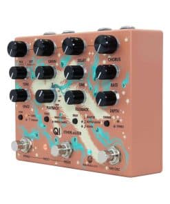 El Qi Etherealizer (pronunciado chee ethereal-izer), una creación colaborativa con Yvette Young, es un pedal multi-efectos que combina Chorus, Delay, efectos granulares y, por supuesto, Reverb, en un patio de recreo creativo para la exploración atmosférica. Conocida por su innovadora técnica de interpretación de fingerstyle, su amor por los pedales de guitarra y su liderazgo de la banda de math rock Covet, el Qi refleja su enfoque en la creación de paisajes sonoros exuberantes y en evolución. Nombrado en honor a la energía vital de la vida que fluye a través de todos los seres vivos, el Qi está diseñado para ofrecer texturas ricas, atmósferas expansivas y capas dinámicas. Al combinar la visión artística de Yvette con un diseño de vanguardia, el Qi abre la puerta a sonidos inmersivos y de otro mundo. El Qi te permite mezclar y combinar el coro, el delay y el grano y ejecutar en serie o paralelo para crear tu propio universo inspirador de posibilidades en un campo estéreo. Con la capacidad de guardar ajustes preestablecidos y omitir los controles de coro, delay y grano, puedes cambiar rápidamente e instantáneamente los ajustes presionando simultáneamente los interruptores Bypass y Freeze. Pasa de un coro tradicional con un poco de delay, o sumérgete por completo y deja que el Qi se apodere con lavados inexplicables de ambiente glitchy y exuberante. Sea cual sea tu estilo, el Qi le dará una nueva vida.