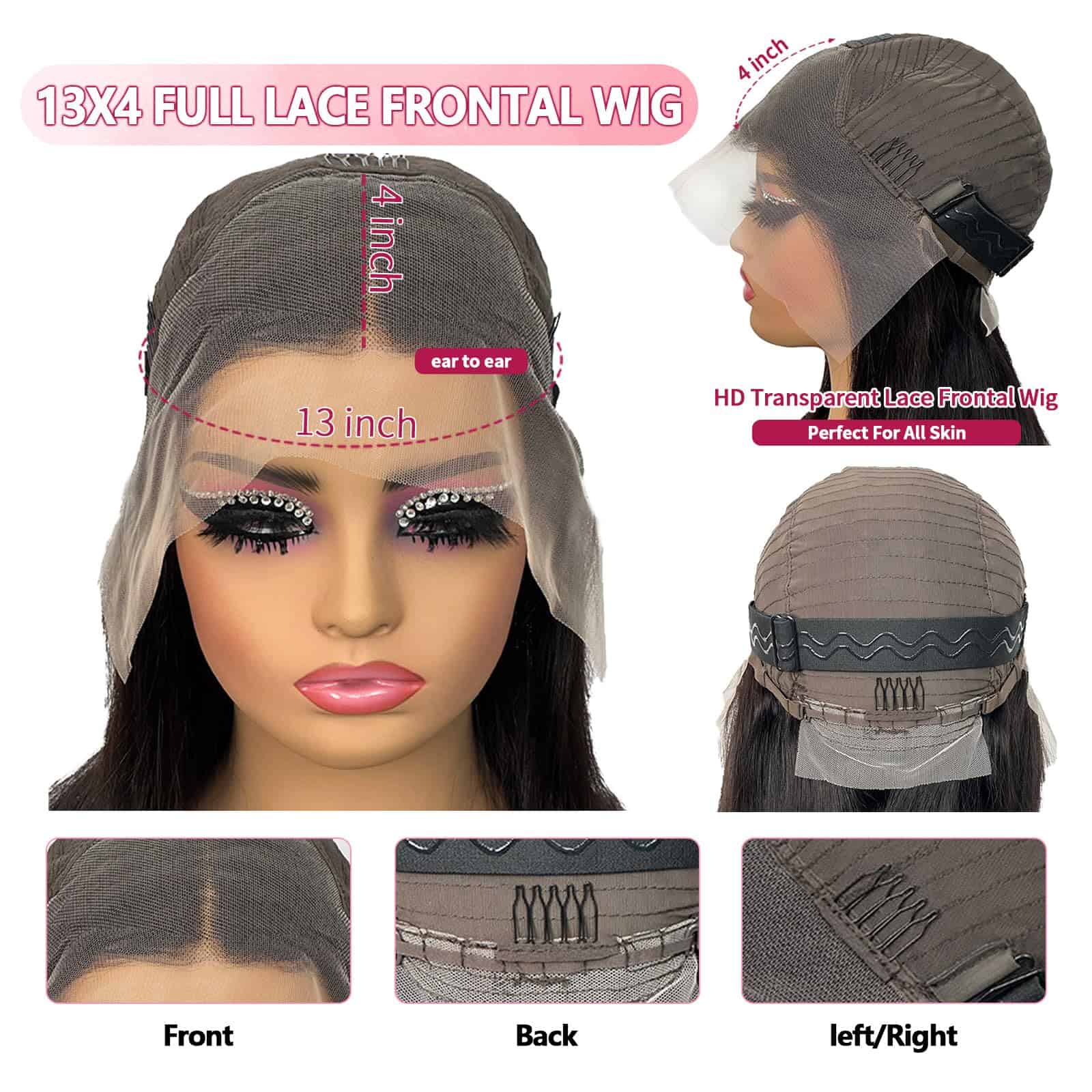5. Detalle de Pelucas Frontales de Onda del Cuerpo Cabello Humano: Tamaño Promedio de Gorra de Pelucas de Cabello Humano (21.5-22.5 Pulgadas) Se Adapta a Todas las Cabezas 180% Densidad de Pelucas de Cabello Humano de Encaje Frontal HD 13×4, De Oído a Oído Encaje Suizo Transparente, Línea del Cabello Natural con Pelo de Bebé Alrededor, Cuero Cabelludo Simulado, El Área de Encaje Es Grande, Puede Hacer Parte Media, Parte Lateral y Cola de Caballo Alta, Hace que Tu Estilo de Cabello Sea Más Natural y Hermoso