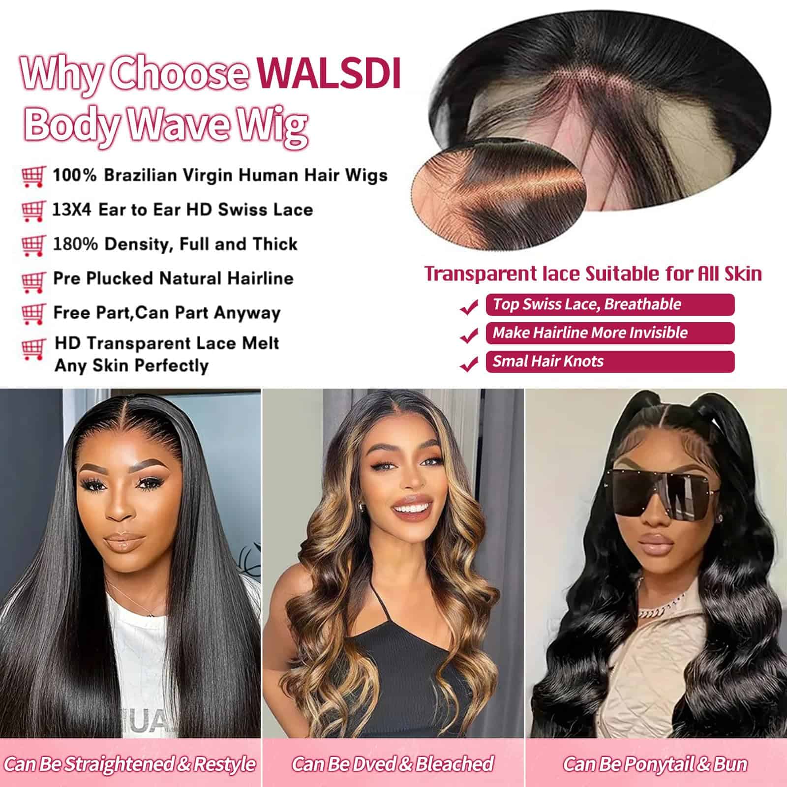 1. Material de Pelucas de Cabello Humano de Onda del Cuerpo 13×4: Peluca de Onda del Cuerpo de Cabello Humano Hecha de Cabello Humano Brasileño; Cortada de Donante Joven Natural y Saludable, Puntas Llenas y Saludables, Suave y Cómodo Contra la Piel; 180% de Densidad de Pelucas de Cabello Humano de Onda del Cuerpo Con Patrón Rizado de Bajo Mantenimiento; Se Puede Teñir; Restilizado; Prealisado y Decolorado.
