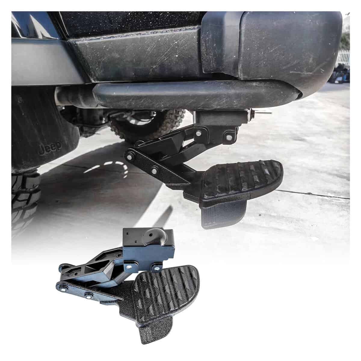 4. Acceso fácil: El paso para la puerta trasera proporciona un paso abatible confiable y fácil de usar que se guarda debajo del parachoques trasero cuando no está en uso para mayor comodidad y estética.