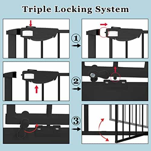1. Sistema de Triple Bloqueo Los bebés serán bloqueados por la puerta de seguridad para bebés ya que diseñamos un sistema de triple bloqueo que es fácil de abrir para adultos pero resistente para los bebés. En la parte superior de la puerta, hay dos botones, cada uno controla un bloqueo. Para abrir la puerta, debe presionar ambos botones simultáneamente. Y en la parte inferior de la puerta, hay dos cerraduras de maní que controlan la dirección de apertura y bloqueo. Con estos triple bloqueos, los bebés curiosos estarán bien protegidos por nuestra puerta metálica. 2. Modos Múltiples Nuestra puerta de triple bloqueo tiene varios estados para satisfacer sus múltiples necesidades en la vida. Cuando los tres bloqueos están cerrados, los bebés o mascotas pequeñas serán detenidos por ella. En la parte inferior, hay dos cerraduras de maní que controlan la dirección de apertura y bloqueo. Si la cerradura de maní en un lado está cerrada, la puerta solo se puede abrir hacia un lado. Si ambas cerraduras de maní están abiertas, la puerta puede girar en ambas direcciones. Además, se mantendrá abierta a 90 grados y se cerrará automáticamente cuando sea menos que eso. 3. Duradero y Seguro La puerta extra ancha para bebés montada a presión está hecha de acero grueso resistente y elegante, lo que la hace ultra segura para proporcionar una buena protección para sus pequeños bebés, gatos o perros. Con un espacio de 1.96 pulgadas entre los tubos redondos, es perfecta como una puerta ajustable para restringir eficazmente la entrada y salida de niños pequeños y mascotas. Después de pruebas manuales, las puertas de granero para niños o mascotas pueden resistir 180 libras de tiro. 4. Multiuso El ancho de la puerta para bebés de triple bloqueo extra ancha montada a presión se puede ajustar de 25.59 pulgadas a 81.49 pulgadas para que esté disponible para escaleras, puertas y otras diversas ocasiones para evitar que los bebés o mascotas trepen. Consejos: antes de la instalación, habrá un espacio entre el pestillo de la puerta ancha y el marco que NO es un defecto y NO está doblado. Este espacio desaparecerá una vez instalado. 5. Fácil de instalar Nuestra puerta para bebés extra ancha montada a presión viene con 4 pernos de presión ajustables, que es muy fácil de instalar rápidamente: no se requieren herramientas, no es necesario perforar agujeros y no se daña la pared de su casa. La puerta para bebés extra ancha montada a presión también se puede quitar rápidamente de la abertura para un fácil almacenamiento. Si tiene algún problema durante la instalación, no dude en contactarnos.
