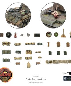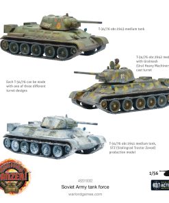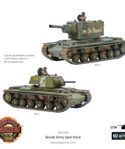 La Fuerza de Tanques Soviéticos de Achtung Panzer! te permite desplegar cinco icónicos tanques soviéticos para enfrentarte a los enemigos de la Madre Patria. El trío de no nonsense T-34/76 tanques medianos con su gran equilibrio de movilidad, potencia de fuego y protección son más que bien respaldados por los monstruosos tanques pesados KV-1/KV-2 e IS-2, que ofrecen un golpe serio y traen a la mesa una armadura enormemente gruesa, dándole a tu pelotón una gran capacidad de avance para que tus T-34s exploren. Además de estos cinco impresionantes vehículos plásticos (y un fantástico conjunto de artículos de estiba con personalidad), las cartas de activos específicas para la Unión Soviética incluidas, junto con las cartas de datos para 20 tanques diferentes (¡permitiéndote desplegar una gama aún mayor de blindaje soviético!), cartas de Tanque As y habilidades de As, fichas de juego y marcadores, además de figuras de tripulación de tanques montados y desmontados, te dan todo lo que necesitas para enfrentarte a los enemigos de la Unión Soviética. Za rodinu! Za Stalina! La Fuerza de Tanques Soviéticos de Achtung Panzer! contiene: Kits de plástico duro a escala 1/56 de lo siguiente: 3x tanques medianos T-34/76, 1x tanque pesado Iosef Stalin 2, 1x tanque pesado KV-1/tanque de asalto KV-2, Guías de montaje y calcomanías a todo color, Marcadores de daño de vehículos, 10 cartas de activos de Achtung Panzer!, 2 cartas de datos de Tanque As de Achtung Panzer!, 4 cartas de habilidades de Tanque As de Achtung Panzer!, Seguidor de fase y tiempo de Achtung Panzer!, Tarjetas de datos para 16 vehículos de Achtung Panzer!, Fichas y marcadores de Achtung Panzer!, Estiba y accesorios de tanques, Tripulación de tanques montados y desmontados (Warlord Resin).