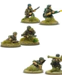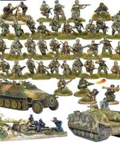 Los primeros paracaidistas del mundo en ser utilizados en grandes cantidades, los alemanes Fallschirmjager estaban en la punta de la lanza cuando estalló la guerra en 1939. Lideraron audaces asaltos a objetivos estratégicos, como la fortaleza de Eben Emael, lo que permitió a los tanques seguir avanzando por Europa. Como fuerza de paracaidistas, el mayor logro de los Fallschirmjager sería la intensa lucha que llevaron a cabo al capturar Creta frente a las más numerosas fuerzas británicas y de la Commonwealth durante 1941. Esta victoria pírrica significó que nunca más se utilizó en masa. Pequeñas unidades aún operaban en planeadores y paracaídas, famosamente rescatando al líder italiano Mussolini y atacando detrás de las líneas estadounidenses en las Ardenas. Su momento más destacado sería sin duda la cruenta batalla mientras ocupaban el monasterio de Montecassino durante meses ante abrumadoras probabilidades, ganándose el apodo de ‘Diablos Verdes’. Los Paracaidistas alemanes eran, indiscutiblemente, los más duros de un ejército duro. Las miniaturas de Warlord Games Fallschirmjager son ideales para batallas en el Noroeste de Europa y también pueden utilizarse en acciones en el Frente Ruso.