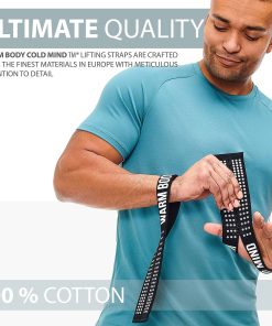 Vendajes de muñeca de levantamiento olímpico V1 de WARM BODY COLD MIND diseñados por el campeón Oleksiy TOROKHTIY, ganador de Campeonatos Mundiales y Europeos de Levantamiento de Pesas, para ayudarlo a maximizar la fuerza de sus muñecas y mejorar sus levantamientos. Con una capacidad máxima de prueba de 300kg (más de 660 libras), estos vendajes brindan comodidad, seguridad y la posibilidad de lograr levantamientos más grandes. Con una longitud de 13″ y un ancho de 2.5″, estas vendas están hechas de 100% algodón de alta calidad, lo que les permite resistir muchas sesiones de entrenamiento y ofrecer un mejor agarre en la barra. Además, absorben el sudor y no irritan la piel, lo que las convierte en la elección perfecta para cualquier culturista, powerlifter o levantador de pesas. El paquete incluye 1 par de vendajes de levantamiento con etiquetado para la mano izquierda y derecha. ¡Aumente sus repeticiones y pesos con estos vendajes de muñeca de alta calidad!