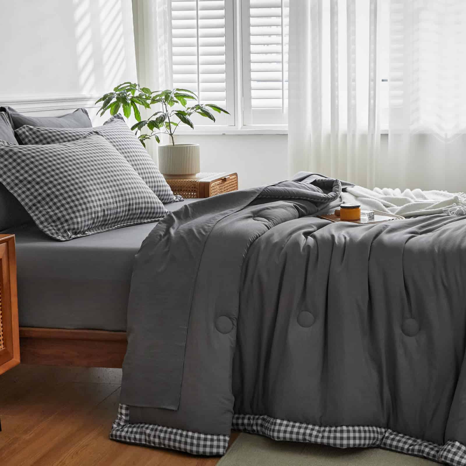 WARMDERN Juego de Edredón a Cuadros Buffalo Check King Gris