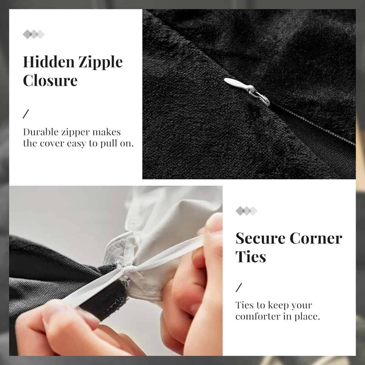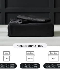 WARMDERN Juego de Funda de Edredón de Terciopelo Negro Tamaño King, Juegos de Ropa de Cama de Terciopelo Crystal Lujo Ultra Suave Moderno con Cierre de Cremallera(Negro, King) – Esta funda de edredón de terciopelo ultra suave de WARMDERN está hecha de terciopelo de alta calidad, tiene un tacto esponjoso y sedoso y proporciona mejor calor, suavidad y transpirabilidad. Con un aspecto lujoso, esta funda de edredón negra adopta un color sólido y está diseñada especialmente para cambiar la sombra del color al tocar la superficie de la funda. Además, nuestras fundas de edredón para ropa de cama adoptan una textura y brillo impresionantes bajo la luz, creando un ambiente noble y elegante en tu dormitorio. El diseño conveniente de nuestra ropa de cama de terciopelo presenta una cremallera oculta, que no solo garantiza una apariencia ordenada, sino que también evita el rascado de la piel. Se han diseñado 4 lazos para mantener el edredón firmemente dentro de la funda, por lo que no tienes que preocuparte de que el edredón se mueva, no importa cómo lo tires y lo gires. La funda de edredón de terciopelo WARMDERN certificada por Oeko-Tex Standard 100 incluye 1 funda de edredón king (104″ x 90″) y 2 fundas de almohada (20″ x 36″). Debido a las diferencias de iluminación y resolución del monitor, puede haber ligeras diferencias de color. Si tienes algún problema, contáctanos. Para mantener una buena experiencia, se recomienda lavar este juego de funda de edredón antes del primer uso. Lavar por separado, lavable a máquina…