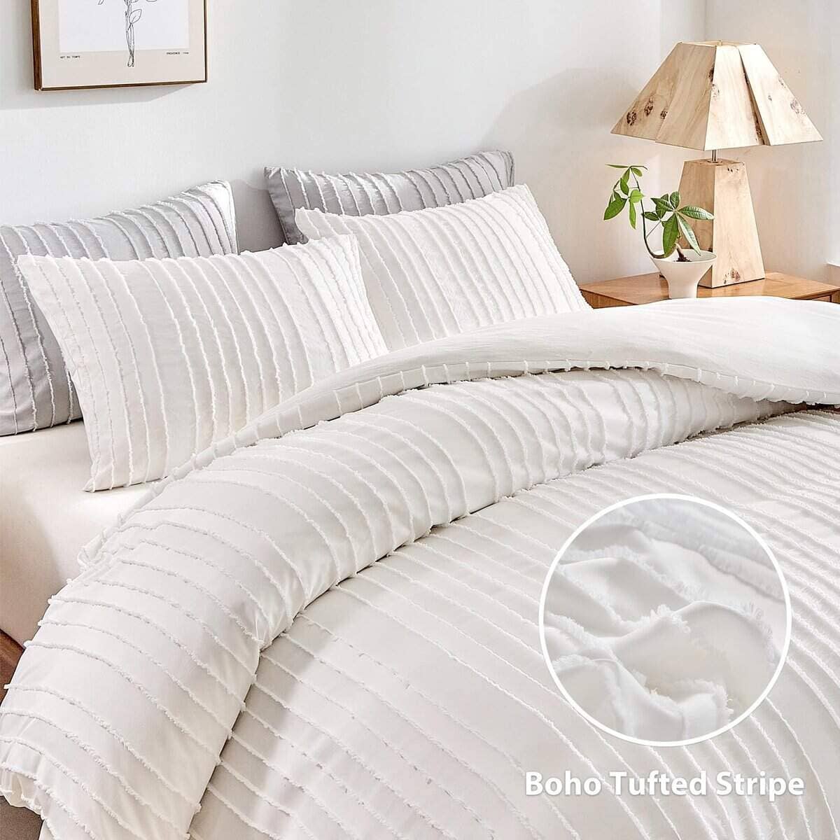 WARMDERN Juego de Funda nórdica Boho Blanco Tamaño King,