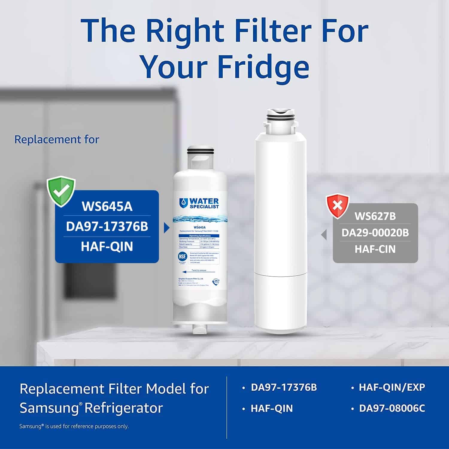 1. Este producto es cuadrado, no redondo. Reemplazo para DA97-17376B (HAF-QIN), no compatible con DA29-00020B (HAF-CIN). El filtro de agua para refrigerador Waterspecialist ofrece un rendimiento de filtración comparable a la marca original. También está certificado por las autoridades NSF 42 y 372. Muy diferente de las marcas genéricas, Waterspecialist solo adopta bloque de carbono de cáscara de coco superior para mejorar el sabor y el olor.