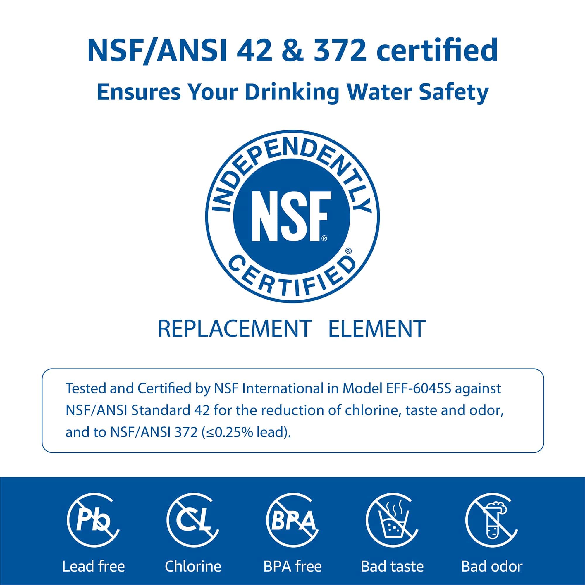 6. Materiales de grado alimenticio: elegimos una carcasa de filtro libre de BPA y grado alimenticio que pasó la certificación NSF 372 para una filtración libre de plomo. Waterspecialist está aquí para proteger su seguridad en el agua.