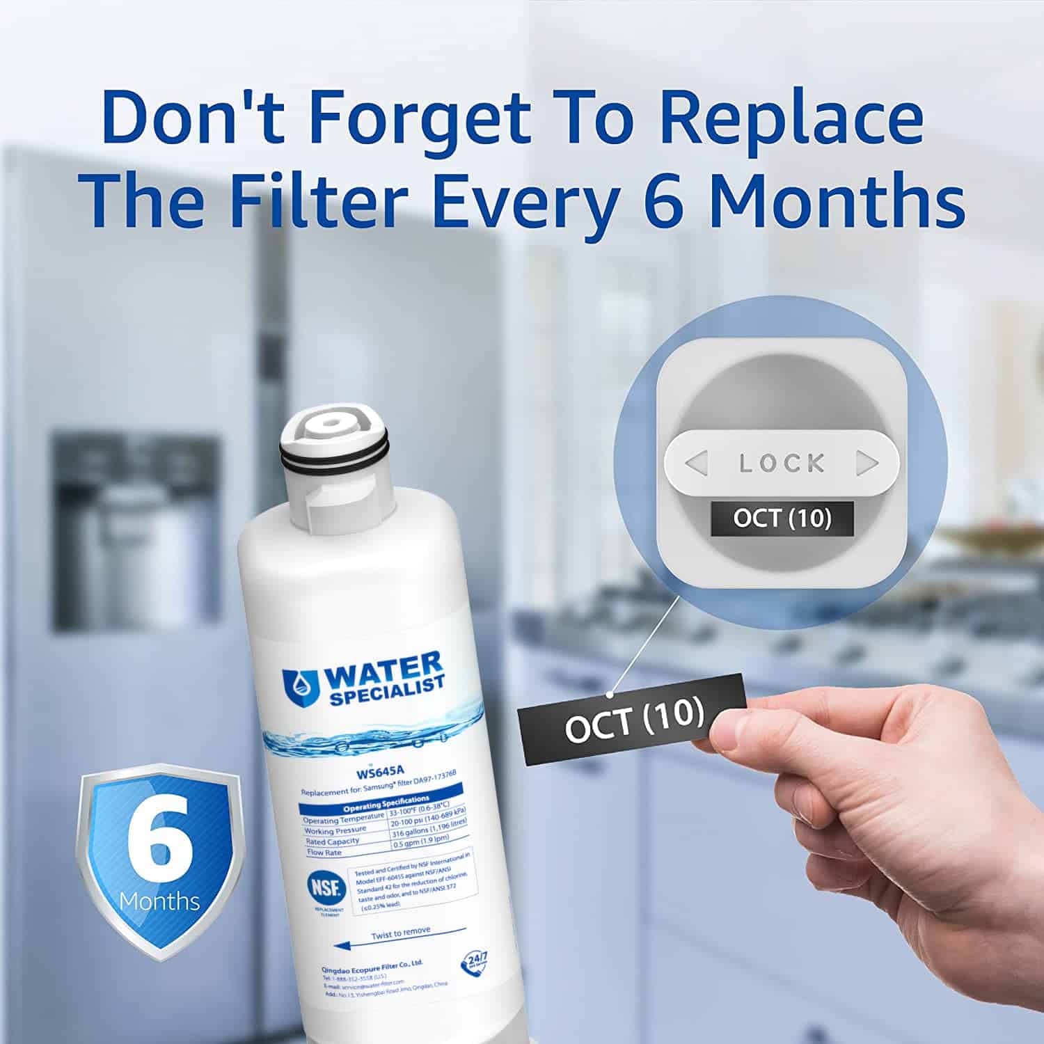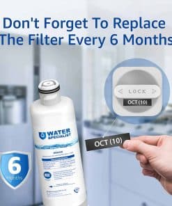 7. Etiquetas de instalación mensuales: Los filtros de reemplazo vencidos pueden causar una acumulación de contaminantes y solo lograr un rendimiento de filtración de bajo nivel. Por lo tanto, los filtros Waterspecialist vienen con etiquetas de fecha que le recuerdan cambiarlo a tiempo. Además, la vida útil del filtro es de 6 meses o 316 galones (varía según la condición del agua).