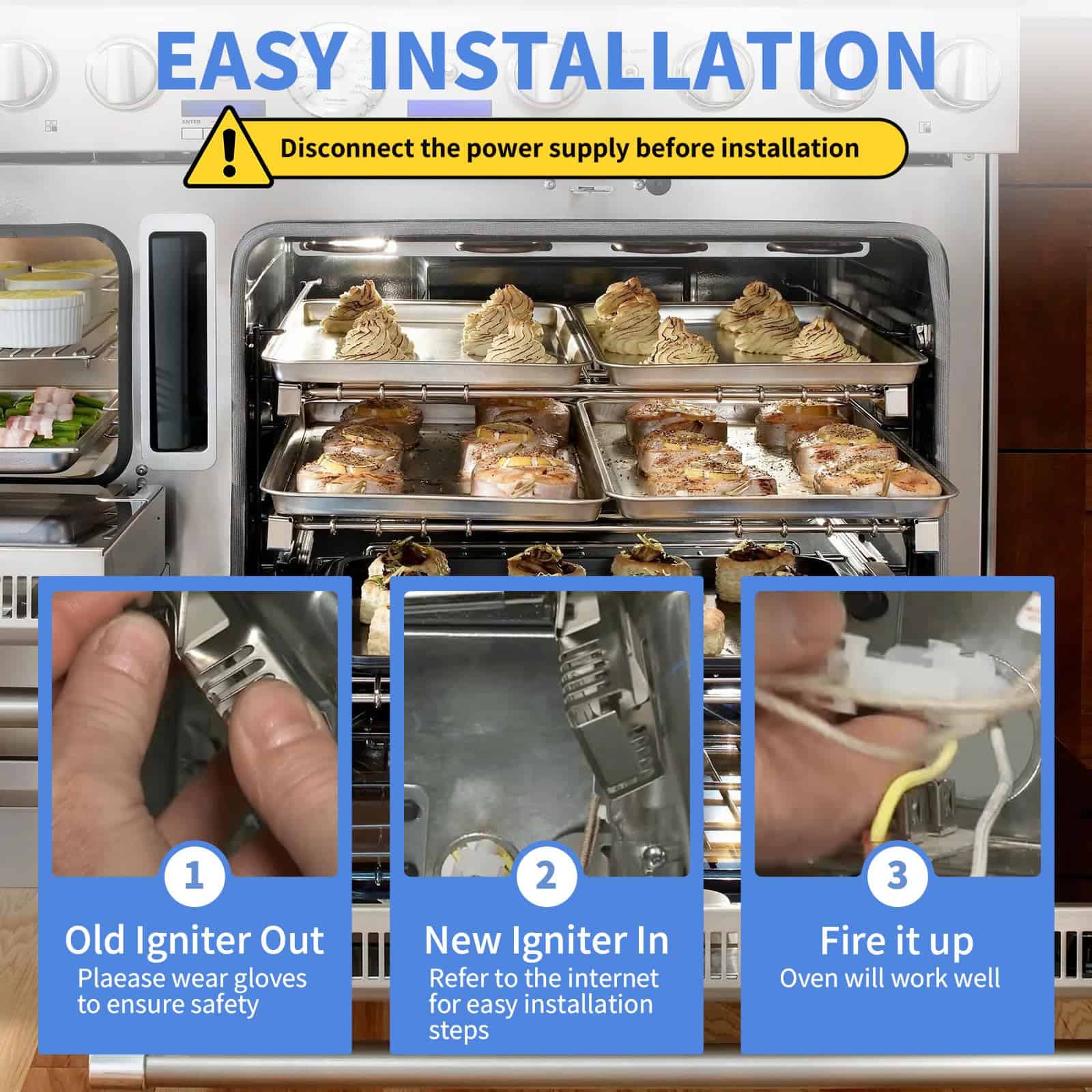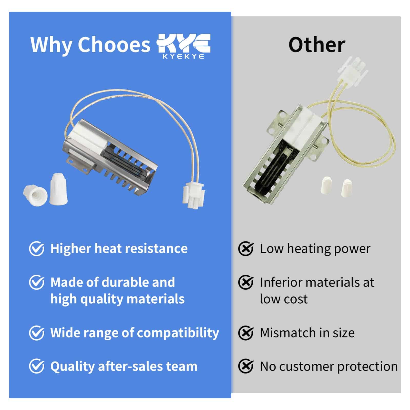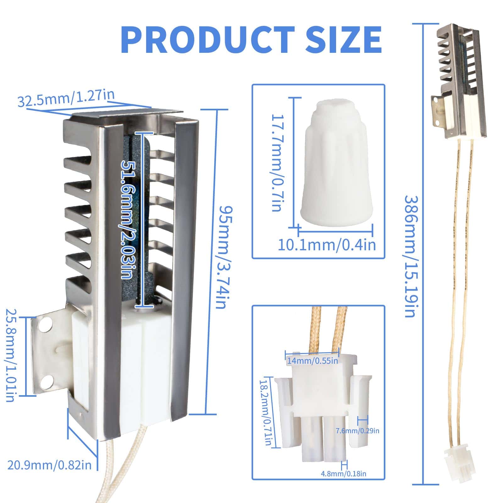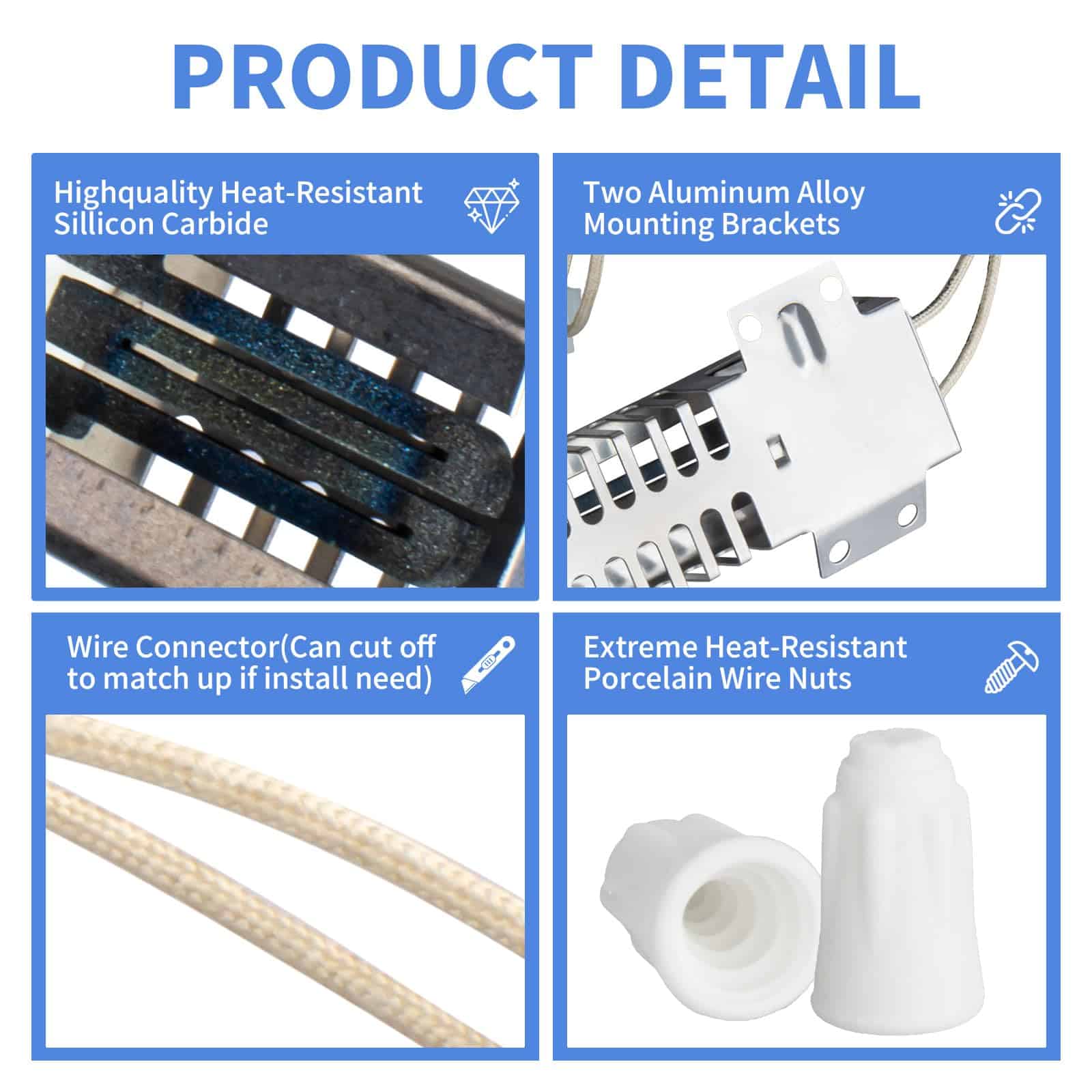 Fácil de instalar Por favor use guantes durante la instalación para garantizar la seguridad. Simplemente retire el viejo encendedor y conecte el nuevo. Si los conectores de cable no coinciden, es necesario cortar los conectores y empalmar los cables juntos con tuercas de alambre de porcelana. Solución a su problema 1. Problema de no calentamiento o calentamiento anormal. 2. El horno funciona de manera inestable, 3. El encendedor está quemado y huele a gas. Para su seguridad, apague el interruptor de circuito de la casa y el suministro de gas antes de instalar este componente. Use guantes de trabajo para proteger sus manos. Embalaje protector DG94-00520A para la sustitución del encendedor del horno Samsung viene con un soporte de instalación, conector de enchufe de cable y 2 tuercas de cerámica. La parte cerámica del sensor de llama es fácilmente dañada. Para evitar la rotura o daño del filamento frágil, usamos cajas con acolchado grueso durante el transporte para garantizar una mayor resistencia al calor y conexiones de energía más grandes. Le ayudará a encender el quemador del horno y ajustar la temperatura correctamente, extendiendo la vida útil de la estufa u horno.
