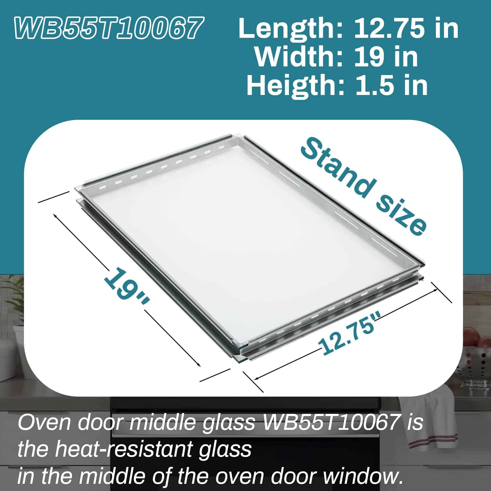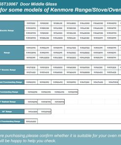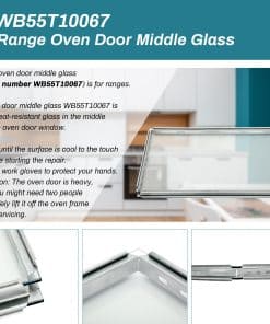 1. WB55T10067: Puerta de vidrio medio WB55T10067 se ajusta perfectamente a los rangos/hornos GE, Kenmore. Hecho de vidrio resistente a altas temperaturas – alta calidad, ajuste perfecto. L: 19″ x A: 12.75″.