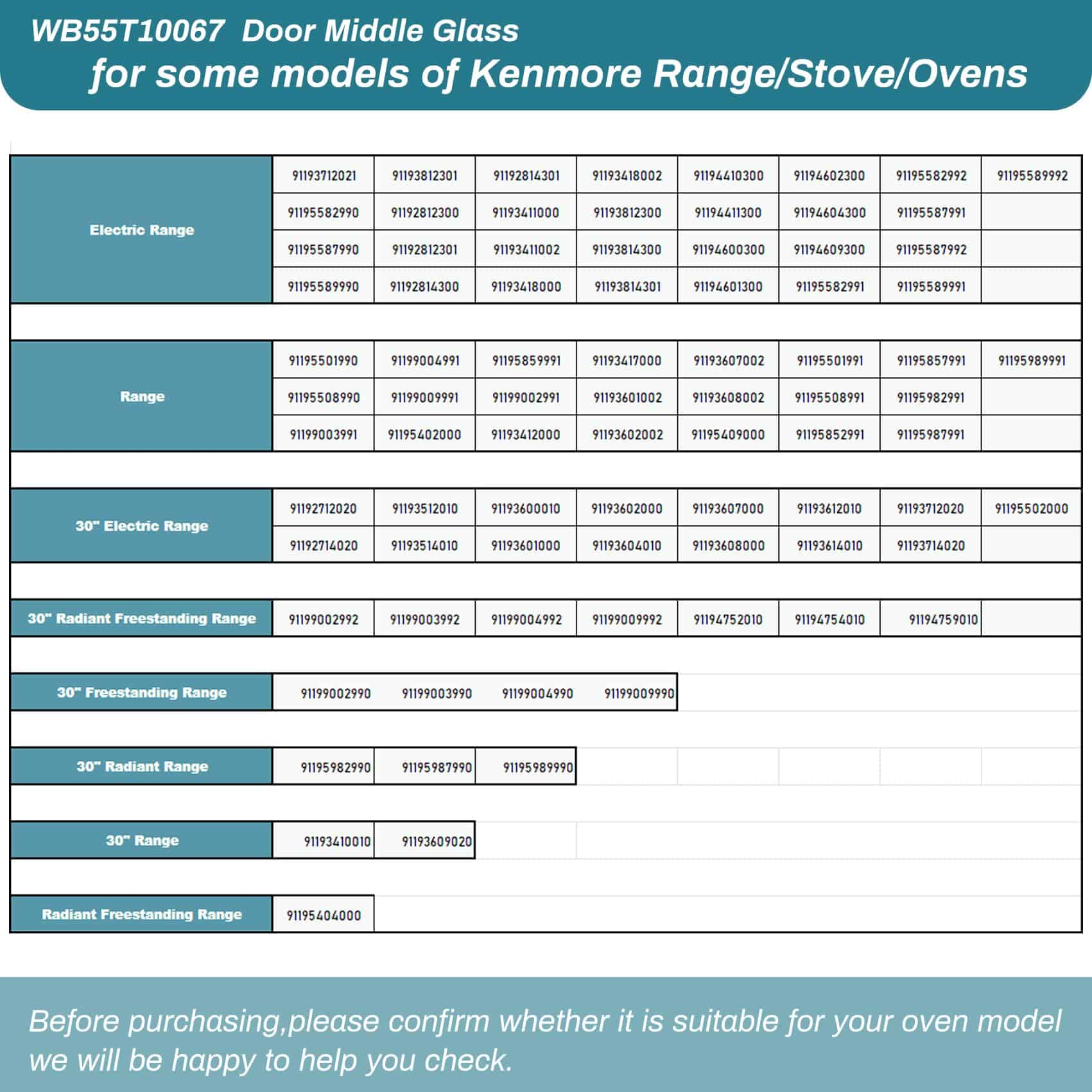 3. Marcas Compatibles: Puerta de vidrio medio WB55T10067 compatible con estufa eléctrica GE y estufa eléctrica Kenmore/estufa eléctrica de 30″/estufa independiente de 30″/estufa independiente de 30″/estufa de 30″/estufa independiente radiante de 30″/estufa independiente de 30″/estufa radiante de 30″/estufa de 30″/estufa independiente radiante de 30″.