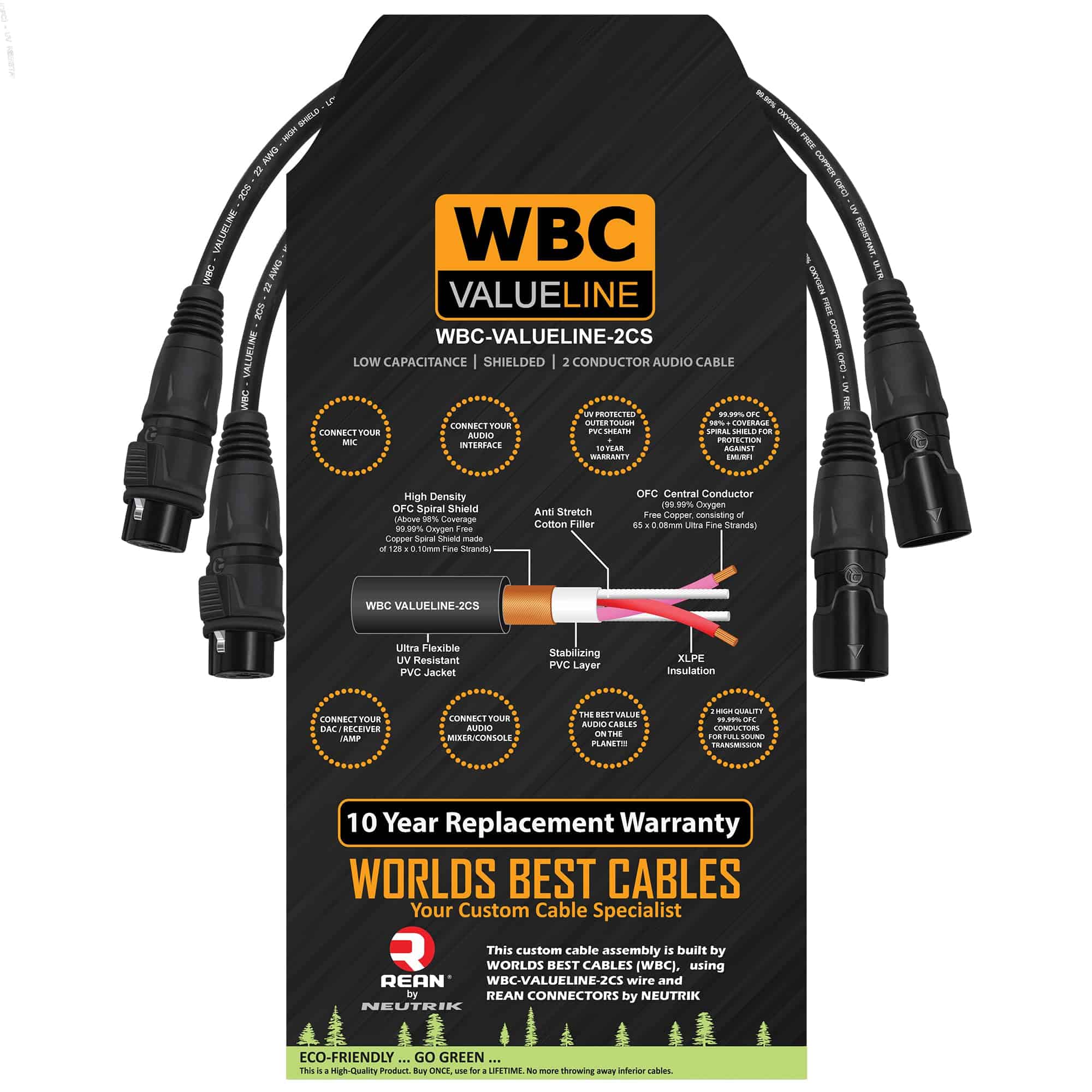 WBC-VALUELINE se presenta para satisfacer la necesidad de un cable de audio de calidad superior, de grado profesional y asequible. Aunque está hecho para un uso profesional resistente en el escenario y en el estudio, nuestros precios razonables significan que los usuarios domésticos y los entusiastas ahora podrán disfrutar del placer de usar estos cables de alta gama y de grado profesional sin arruinarse. Respaldamos todo nuestro equipo con una garantía de reemplazo de 10 años sin preguntas en cualquier escenario de uso riguroso, incluido el uso en la carretera. Los conectores utilizados en este ensamblaje de cables profesional: RCX3M-Z-002 y RCX3F-Z-002 son opciones XLR para uso exterior de calidad profesional de Rean, una empresa de Neutrik AG. Estos enchufes XLR ergonómicos cuentan con contactos de bronce chapados en oro robustos para un rendimiento superior y un diseño a prueba de polvo y agua con clasificación IP65 (en condición acoplada) hecho con materiales calificados UL94 V-0. La elegante carcasa de zinc fundido a presión tiene un acabado duradero resistente a la abrasión. Todos nuestros cables personalizados están soldados profesionalmente utilizando nuestra mezcla de soldadura de plata del 4% y un proceso de soldadura asistido por nitrógeno único para nosotros, que supera los estándares de la industria y mejora la integridad de las juntas de soldadura respecto a los métodos tradicionales. Nuestro extenso período de garantía es un testimonio de la calidad y durabilidad de estos cables. Esta venta es por 2 cables individuales, cada cable tiene 1 pie de longitud. Nosotros en WORLDS BEST CABLES garantizamos que este es un producto de grado profesional, nos enfocamos en brindar el mayor valor a nuestros clientes. Nuestros precios son verdaderamente revolucionarios, por favor no juzgue nuestros productos en base a sus precios asequibles, pruébenos y se sorprenderá gratamente, por favor no olvide comparar nuestro equipo con las marcas tradicionales (¡superaremos y cumpliremos sus expectativas!).