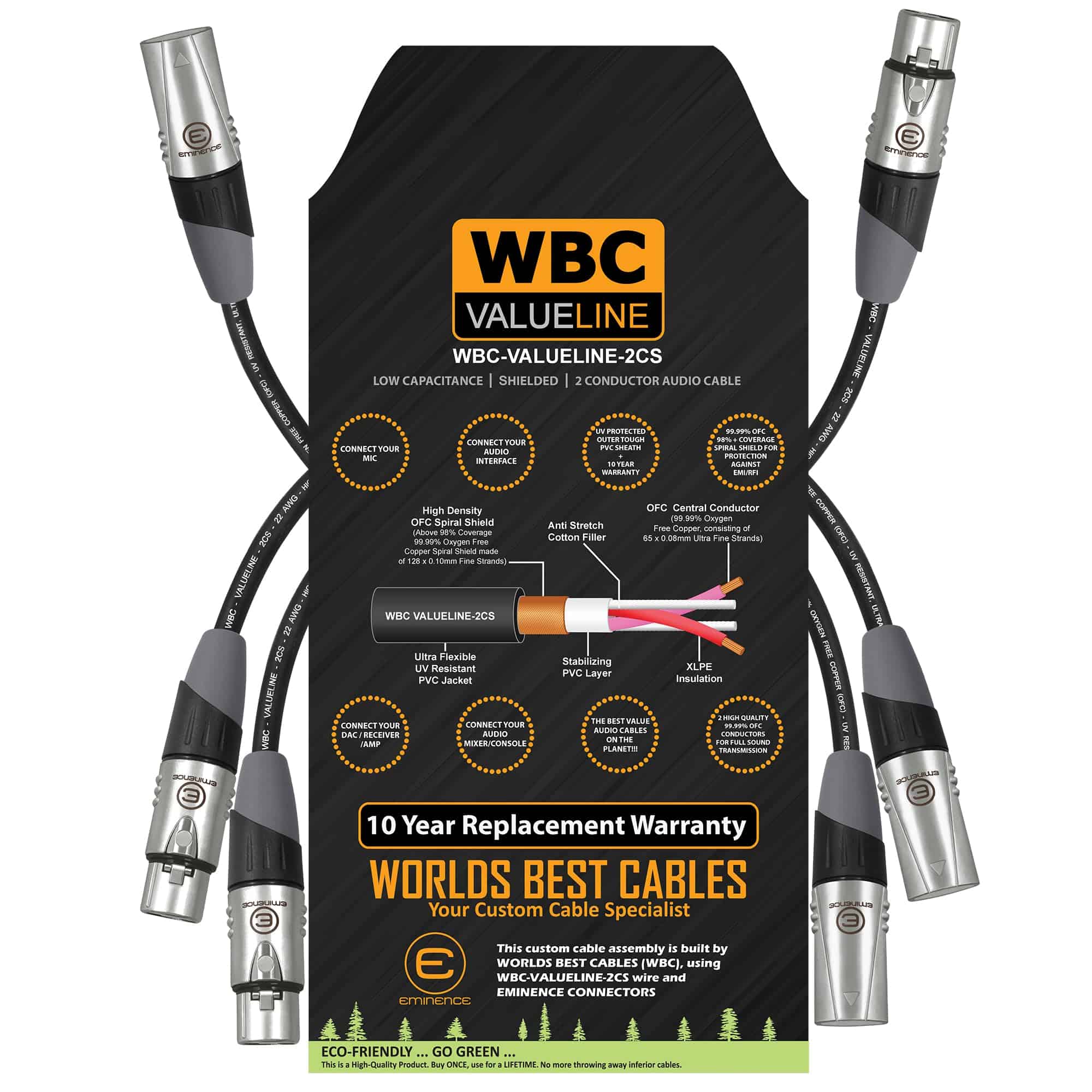 Cable WBC-VALUELINE introducido para satisfacer la necesidad de un cable de audio de calidad superior, de grado profesional y asequible. Aunque creado para uso profesional duro en escenarios y estudios, nuestros precios razonables significan que tanto los usuarios caseros como los entusiastas podrán disfrutar de estos cables de primera calidad sin arruinar sus bolsillos. Todos nuestros productos están respaldados con una garantía de reemplazo de 10 años sin preguntas bajo cualquier escenario de uso riguroso, incluido su uso en carretera. Los conectores utilizados en este ensamblaje profesional de cables son los XLR E311 y E312 de Eminence. Estos enchufes XLR ergonómicos cuentan con 3 contactos maquinados chapados en oro de 3 micro pulgadas para un rendimiento superior y una carcasa de zinc fundido con níquel a prueba de líquidos y polvo. La sujeción revolucionaria evita que el cable se retuerza y mejora la integridad del contacto, mientras que la bota flexible PUR reduce la tensión del cable. Todos nuestros cables hechos a medida están soldados profesionalmente con la mezcla de soldadura de plata 4% de WBC y un proceso de soldadura asistida por nitrógeno único en nosotros, superando los estándares de la industria y mejorando la integridad de las uniones de soldadura sobre los métodos tradicionales. Nuestro prolongado período de garantía es un testimonio de la calidad y durabilidad de estos cables. Esta venta es para 3 cables individuales, cada cable tiene 1 pie de largo. En WORLDS BEST CABLES garantizamos que este es un producto de grado profesional, nos enfocamos en brindar el mayor valor a nuestros clientes. Nuestros precios son verdaderamente revolucionarios, por favor no juzgue nuestros productos en base a sus precios asequibles, pruébenos y se sorprenderá gratamente, no olvide comparar nuestros equipos con marcas tradicionales (superaremos sus expectativas!).