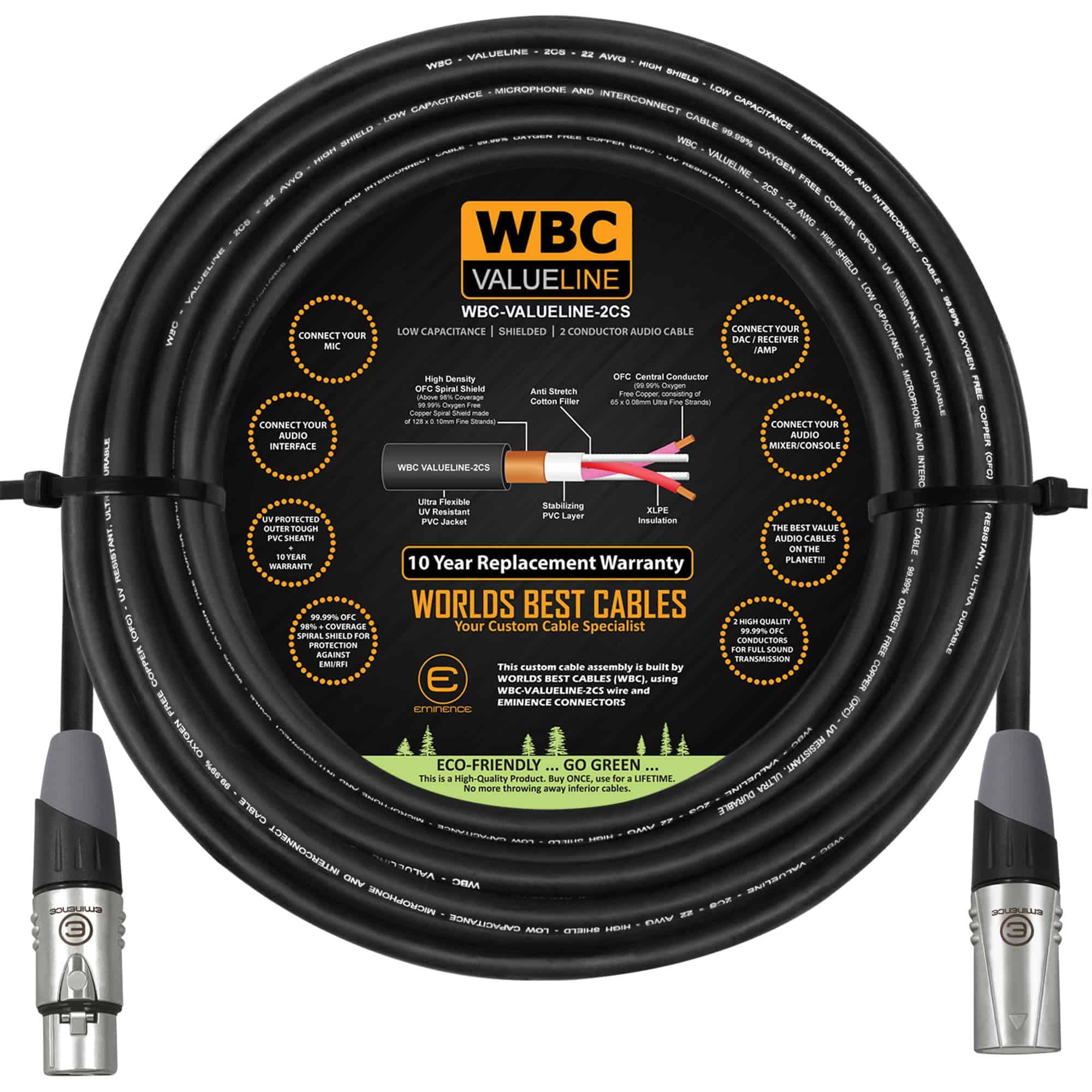 El cable WBC-VALUELINE-2CS (22 AWG) es un cable de micrófono, altavoz activo e interconexión blindada de baja capacitancia de 20 pies. Diseñado para ofrecer calidad superior a un precio asequible, este cable es adecuado tanto para uso profesional en escenarios exigentes como para usuarios domésticos y entusiastas. Los conectores utilizados en este ensamblaje profesional son de grado profesional y ofrecen un rendimiento superior con sus contactos maquinados bañados en oro de 3 micro pulgadas y una carcasa de zinc fundido a presión niquelado a prueba de líquidos y polvo. La soldadura profesional con una mezcla de soldadura de plata al 4% y un proceso de soldadura asistido por nitrógeno únicos de WBC supera los estándares de la industria. Este cable de 20 pies está respaldado por una garantía de reemplazo de 10 años sin preguntas en cualquier escenario de uso intensivo, incluido el uso en la carretera. WORLDS BEST CABLES garantiza que este producto es de grado profesional y se enfoca en ofrecer el mayor valor a sus clientes.