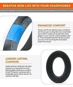 1. Experimenta el FreeZe: Actualiza tus auriculares Sennheiser y Massdrop con las almohadillas de gel refrigerante WC FreeZe PC38X. La capa doble de gel refrigerante (capa interior, capa superior) combinada con un híbrido transpirable de tela deportiva y cuero PU garantizan frescura y confort duraderos.