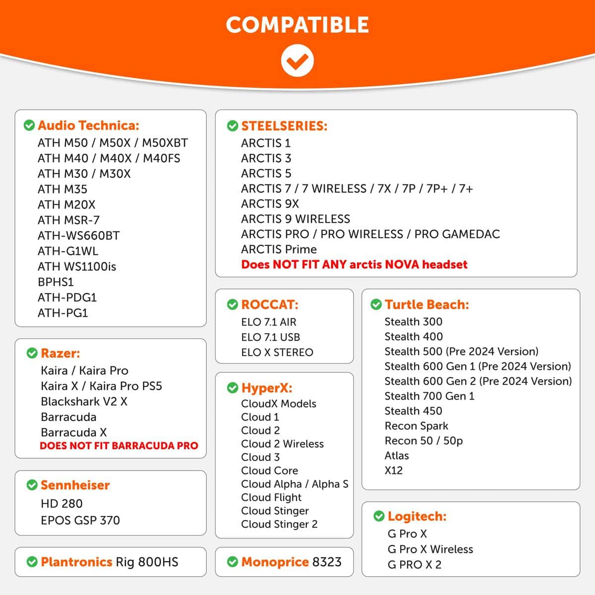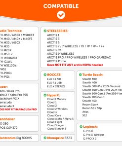 1. Compatibilidad: Aunque estos Earpads Extra Gruesos Actualizados están diseñados para adaptarse a los modelos de Audio Technica ATH, también encajan perfectamente con los siguientes auriculares para juegos populares: HyperX Cloud 2, Cloud Alpha, Cloud Flight, Arctis 7, Arctis Pro, Logitech G Pro X, Turtle Beach Stealth 600 y muchos más. Consulte la foto de compatibilidad para ver la lista completa.
