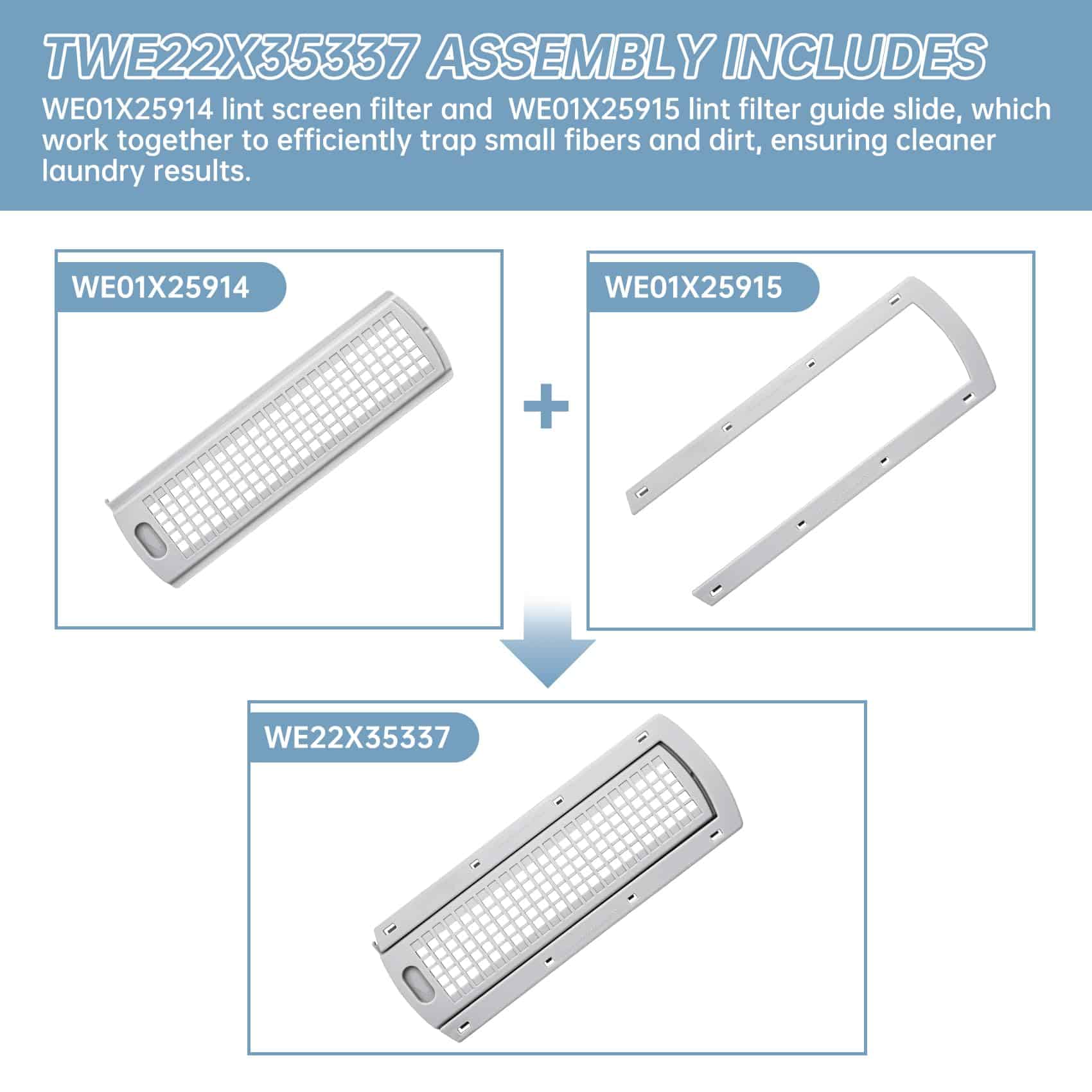 2. Kit de Filtro de Pelusa para Secadora WE22X35337 Reemplaza Números: WE01X20427, WE18M51, WE1M406, WE01M0406, PS12068859, AP6042064, 4469216, 4456026, AP6039698, WE1M1001, WE1M407, PS11772026, WE01M0407, Compatible con Secadoras GE, Hotpoint Reemplazo para WE01X25914 WE01X25915.