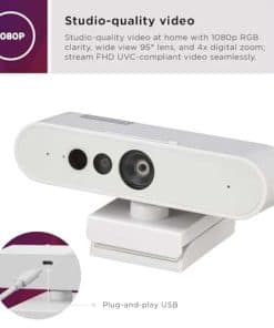 Prepárese para la acción con la webcam Lenovo 510 FHD. Esta conveniente cámara para portátil captura todo con una claridad cristalina en RGB 1080p impresionante y transmite video FHD compatible con UVC de forma fluida. Los micrófonos duales capturan el audio desde hasta 2 metros de distancia, de forma precisa y clara, para que pueda estar seguro de que su videollamada, videochat familiar o video en streaming tenga un audio fuerte y claro. Más que una webcam común, la webcam Lenovo 510 FHD tiene Windows Hello incorporado para que usted y la familia puedan usar la tecnología de reconocimiento facial para iniciar sesión fácil y segura con solo una sonrisa, sin necesidad de contraseña. Pequeña, portátil y elegante, esta webcam full HD tiene un soporte de clip universal listo para trípode, lo que le permite simplemente enchufar el cable USB-C y sujetarlo a su computadora portátil o monitor. Controle lo que los usuarios ven con controles de panorámica de gran angular, inclinación, una lente que se puede girar 360 grados y una cubierta de privacidad que se puede cerrar para mayor seguridad.