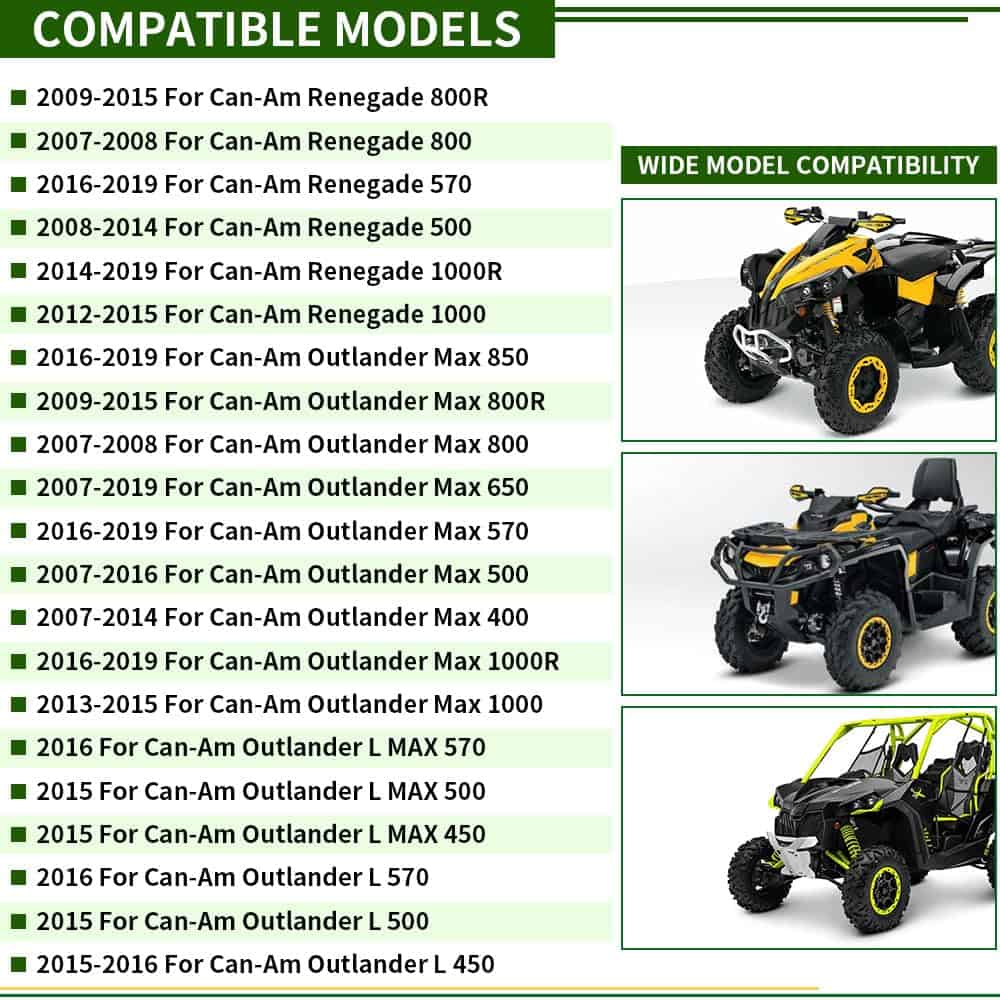 Compatibilidad con múltiples modelos de Can-Am Renegade, Outlander, Maverick y Commander, así como Bombardier Outlander. Incluye herramienta extractora de volante. Ofrece un rendimiento duradero y viene con garantía de 12 meses. Excelente servicio al cliente disponible las 24 horas del día.