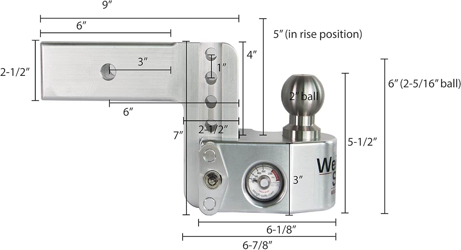 1. AYUDA A PREVENIR LA OSCILACIÓN DEL REMOLQUE: Único enganche de bola de remolque de 4 pulgadas que mide con precisión el peso de la lengüeta. A través de la tecnología patentada, los enganches Weigh Safe incluyen escalas incorporadas que le permiten cargar y remolcar de forma segura cualquier remolque. 2. ENGANCHE DE BOLA AJUSTABLE DE 4″: Caída de 4″ y ascenso de 5″, se ajusta en incrementos de 1″ para obtener el ajuste perfecto para cualquier altura de remolque – Asegurado con Diseño Antirrobo para proteger su enganche de caída. 3. CAPACIDAD DE REMOLQUE DE SERVICIO PESADO: Hecho de 18 libras de aluminio de grado aeronáutico y acero inoxidable, con una capacidad de remolque líder en la industria (GTW) de 18,500 lbs. ¡El enganche Weigh Safe es resistente como vienen! 4. INCLUYE JUEGO DE 2 PIEZAS CON MISMA LLAVE: Cerradura de Doble Pasador y Cerradura de Receptor con la Misma Llave para asegurar su enganche con una sola llave! No es necesario tener múltiples llaves para su enganche de bola con este Diseño Antirrobo. 5. ENCHUFES PARA REMOLQUE HECHOS EN EE. UU.: Enganche de aluminio resistente con medidor de peso de lengüeta incorporado para remolcar de forma segura (Garantía de Por Vida del Medidor Incluida), 2 bolas de remolque de acero inoxidable, juego de 2 piezas de cerraduras y cubierta de bloqueo contra el polvo