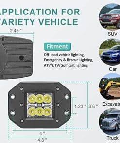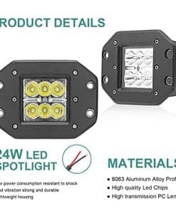 Fitment Polaris Sportsman 570 850 1000 modelos 2008-2014 Polaris RZR 800 2008-2014 Polaris RZR 900XP 2011-2014. Esta kit le permite actualizar su faro de fábrica a Faros de Cubo de Luz Potente de 3″ para Off-road. Potencia: 24W. Número de Chips LED: 6pcs 4W LED Chip de alta intensidad. Lumen: 2400lm. Voltaje de Operación: DC 12-24V. Ángulo de Haz: Haz concentrado de 30 grados. Tasa Impermeable: IP67. Temperatura de Color: Blanco Puro 6000K. Material: Carcasa de Aluminio Fundido Negro, Lente PMMA, Soporte de Montaje de Aluminio. Más de 30,000 horas de vida útil.