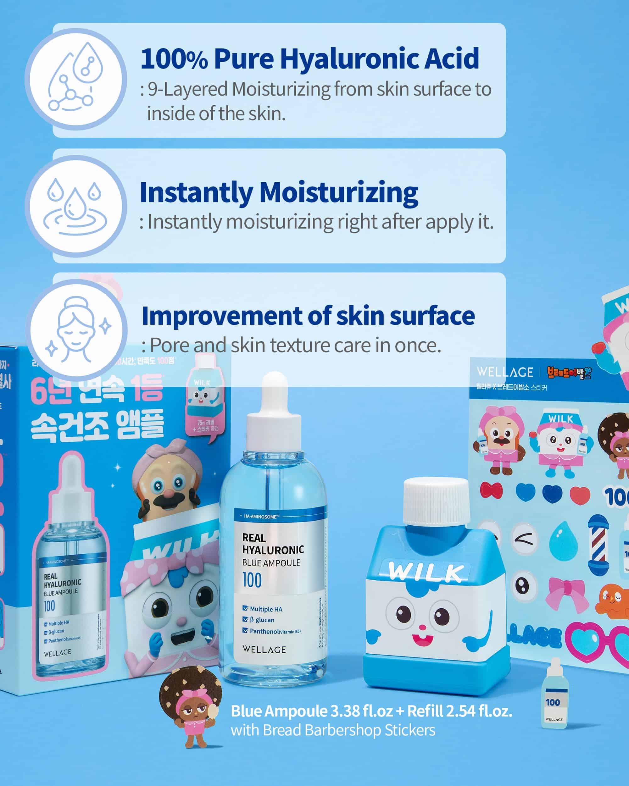 WELLAGE Real Hyaluronic Blue Ampoule 100, Cuidado de la