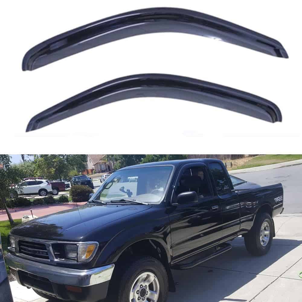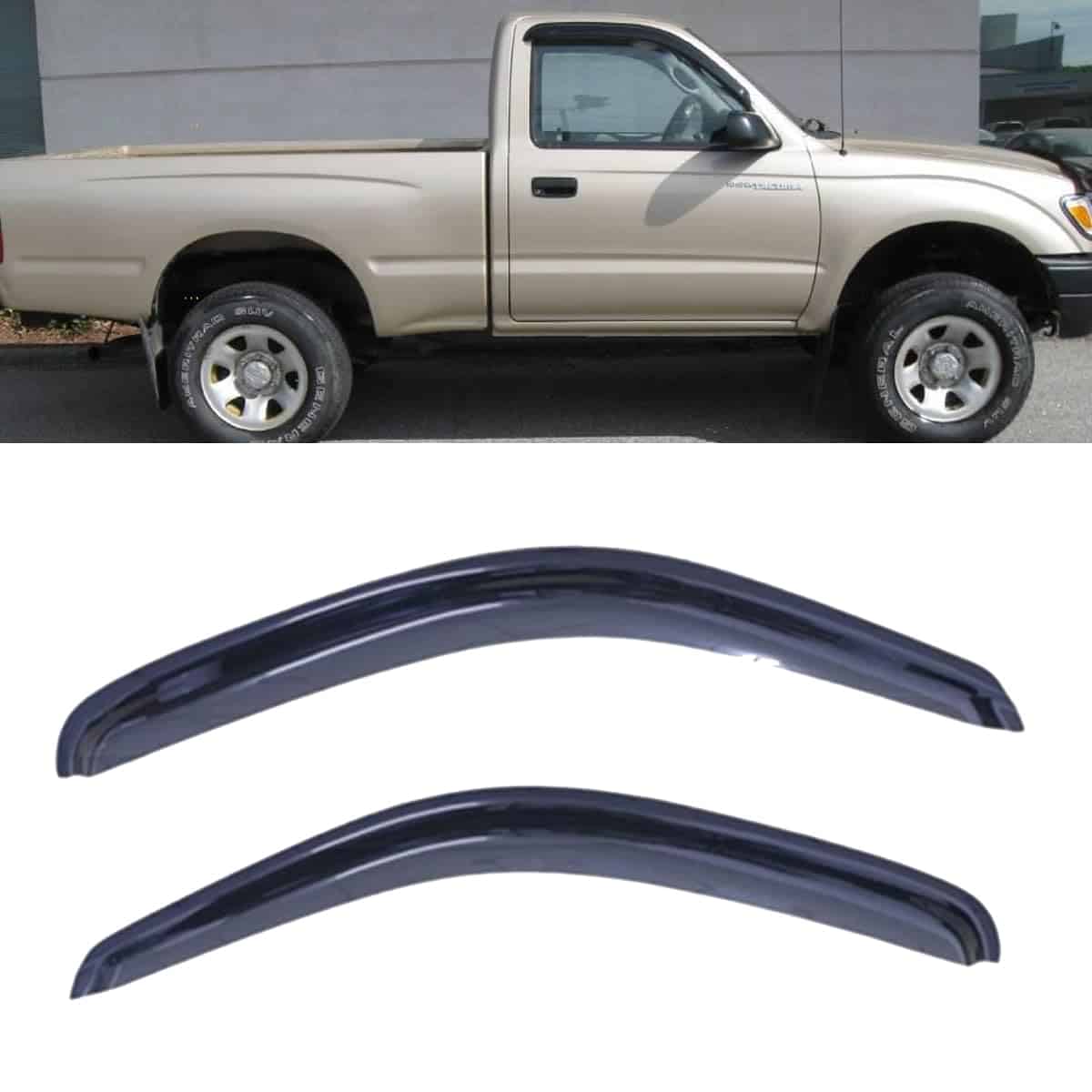 1. Ajuste: Los deflectores de viento para ventanas laterales se ajustan a la Toyota Tacoma Standard (Regular) Cab Pickup 1995-2004.