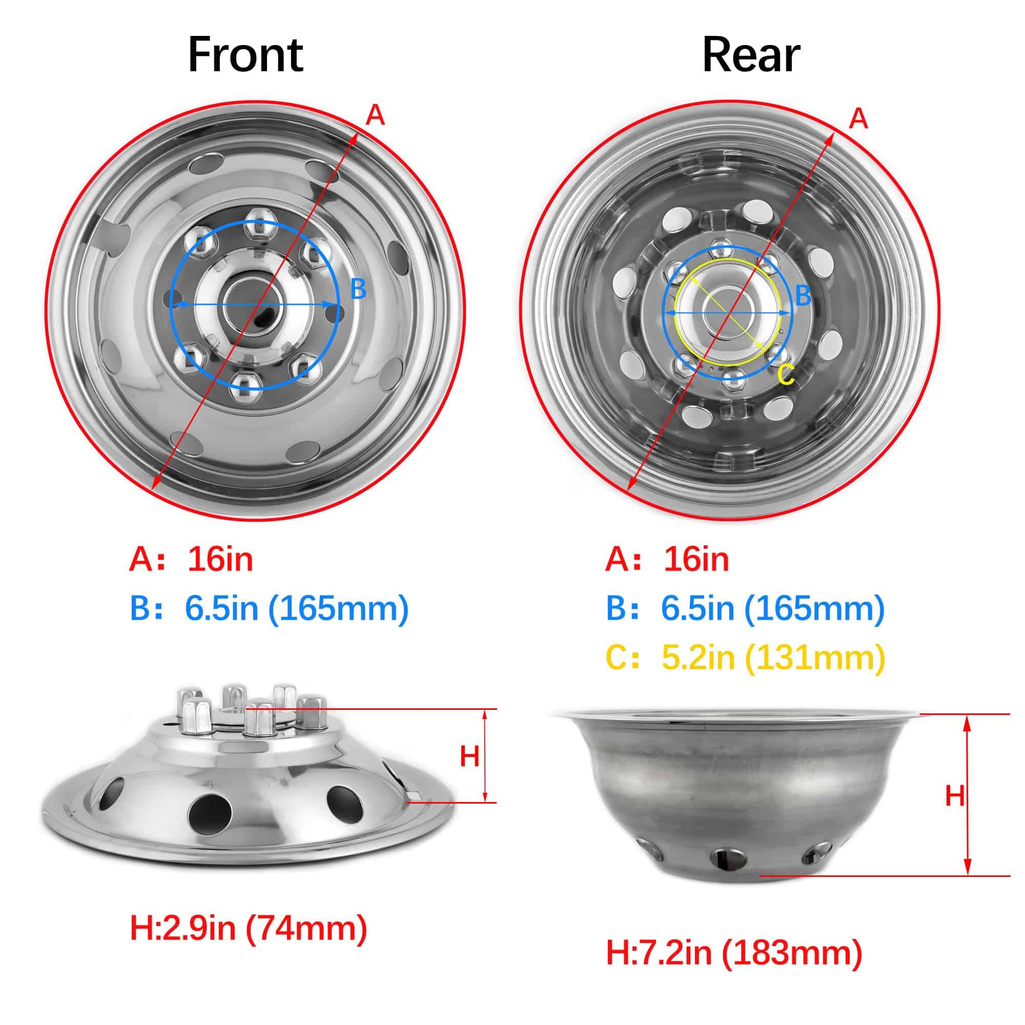 Wensdy 4pcs 16″ Polished Stainless Steel Dually Wheel
