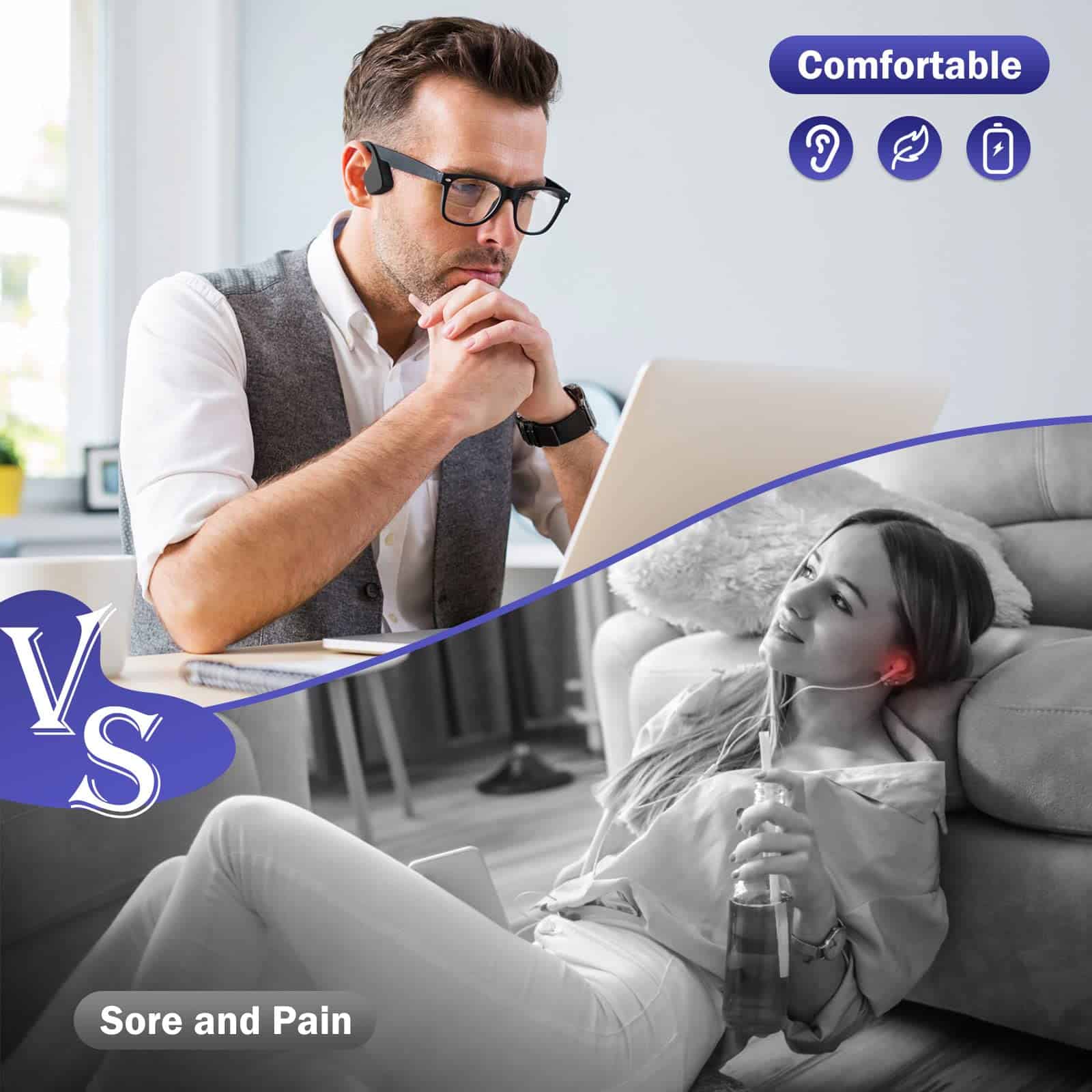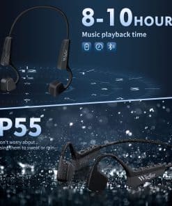4. Auriculares de conducción ósea Bluetooth con micrófono. Los auriculares inalámbricos Bluetooth premium de Wigfar te brindan una experiencia musical inmersiva y también cuentan con una excelente tecnología de reducción de ruido de llamadas y de fugas de sonido para reuniones y llamadas.