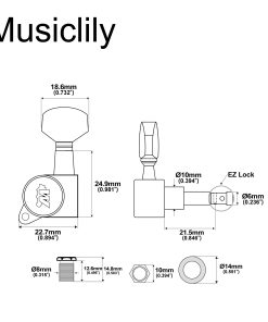 Wilkinson WJN07 Juego de Clavijas de Afinación para Guitarra Izquierda 6 en Línea EZ-LOK Machine Heads 19:1 Ratio Tuning Pegs Keys para Stratocaster Telecaster Guitarra Eléctrica, Negro.