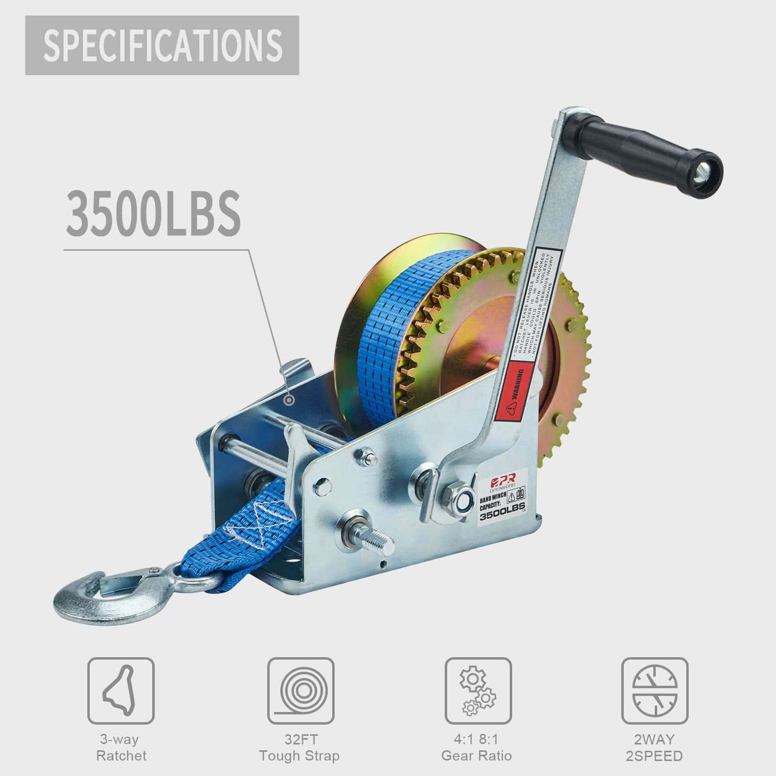 WINCH de barco OPENROAD 3500lbs, WINCH manual con correa
