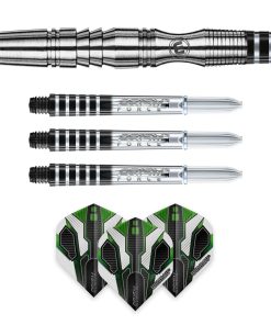 Set de 3 x 18g peso del barril / 20g peso total – 90% de calidad premium de dardos de tungsteno suave Winmau; Ejes Prism Force de Winmau y vuelos Prism Alpha de Winmau; Protector de punta de aluminio grabado con láser de alta gama; Diseñado utilizando la última tecnología de modelado 3D; Asombroso agarre y control que brinda una estabilidad perfecta en el vuelo