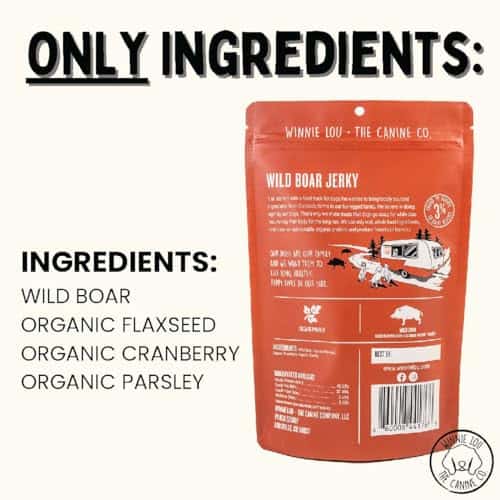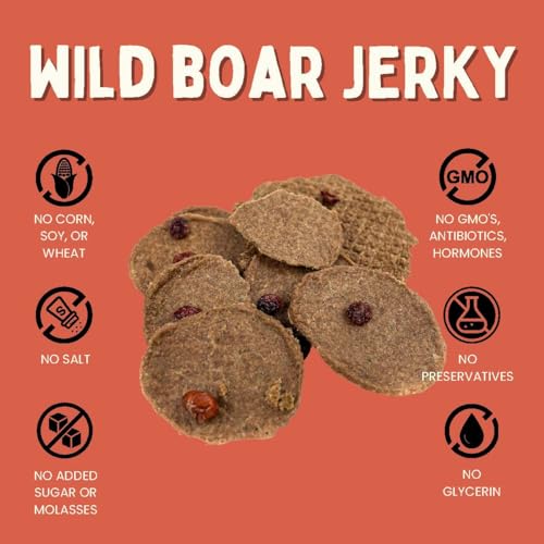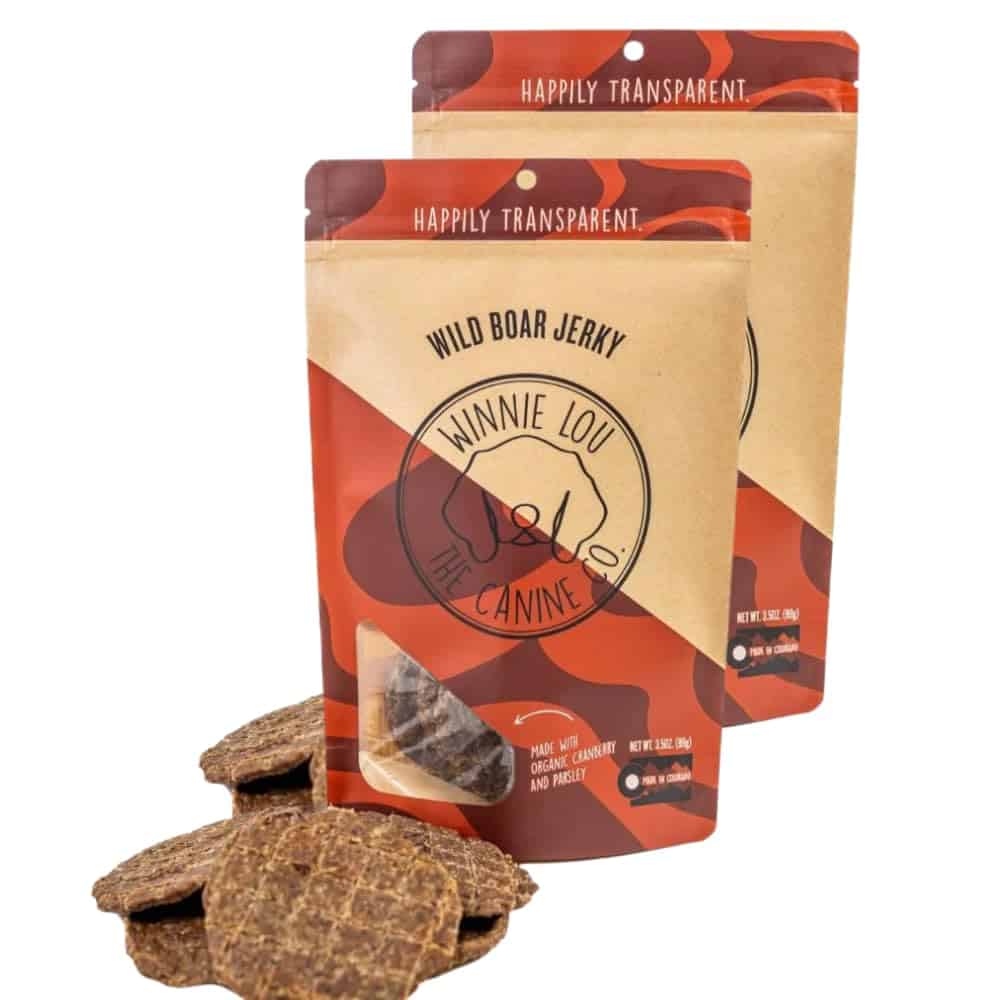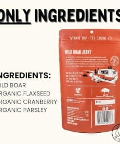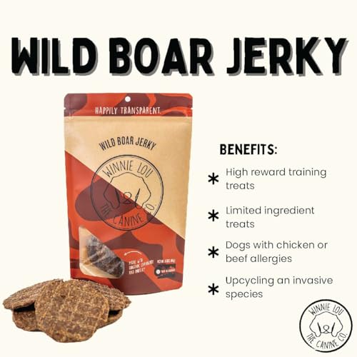 Winnie Lou Jerky ofrece a tu perro golosinas jerky orgánicas y de grado humano. Este paquete de 2 golosinas de jabalí salvaje está hecho en EE. UU. con ingredientes naturales y saludables para tu mascota. ¡Mima a tu perro con estas golosinas deliciosas y nutritivas!