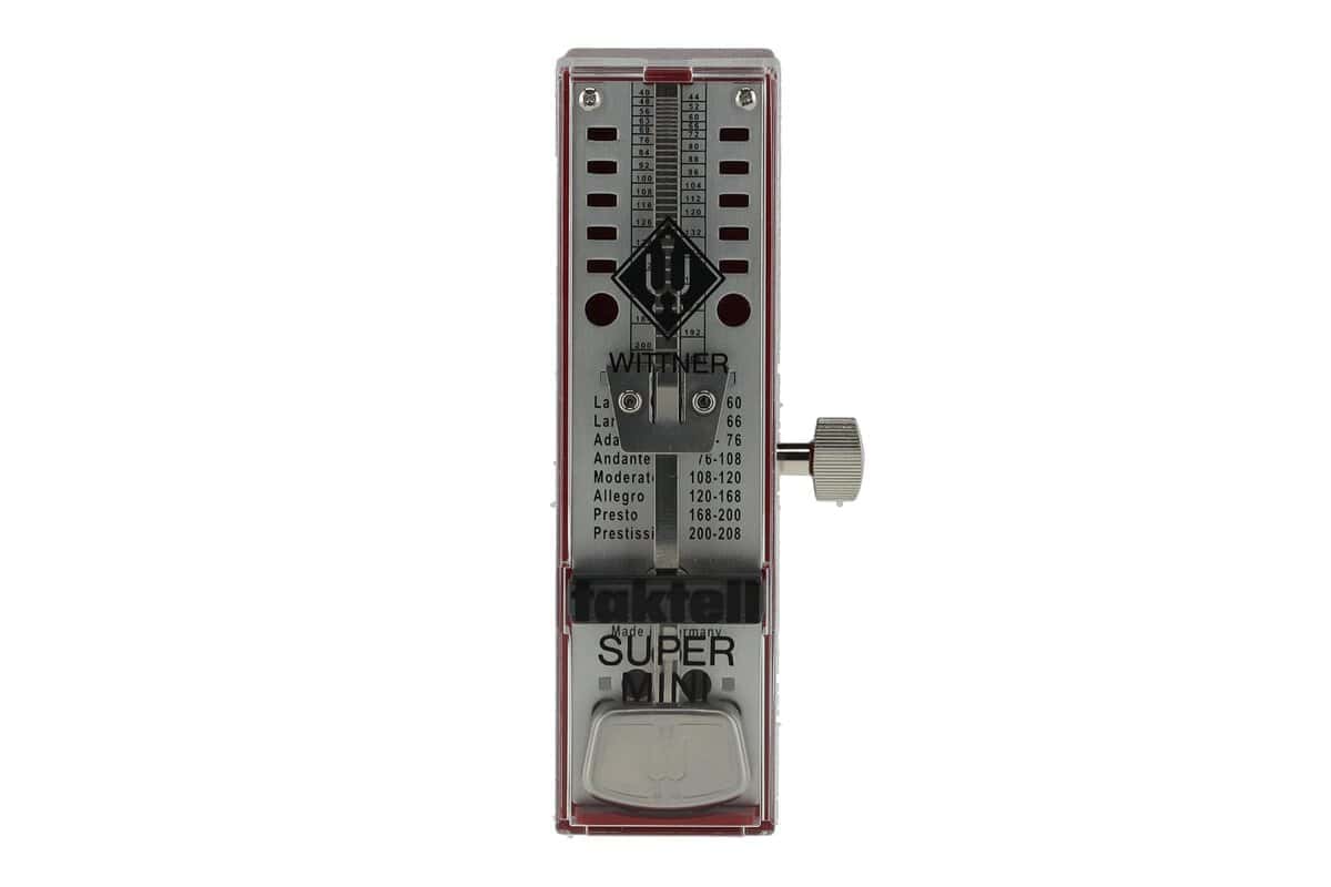 Uno de los metrónomos de péndulo más pequeños del mundo. El metrónomo Super-Mini taktell marca el tiempo de forma visual y auditiva de manera precisa, igual que los metrónomos Wittner más grandes. No requiere pilas: el metrónomo se utiliza con una llave de cuerda, la cual puede guardarse en el compartimento integrado cuando no se está usando. Fabricado con la calidad Wittner, este es uno de los metrónomos de péndulo más pequeños del mundo, accionado por resorte. Suficientemente pequeño para llevar en un bolsillo de abrigo o bolso, pero muy preciso. Perfecto para quienes prefieren un metrónomo de péndulo con portabilidad.