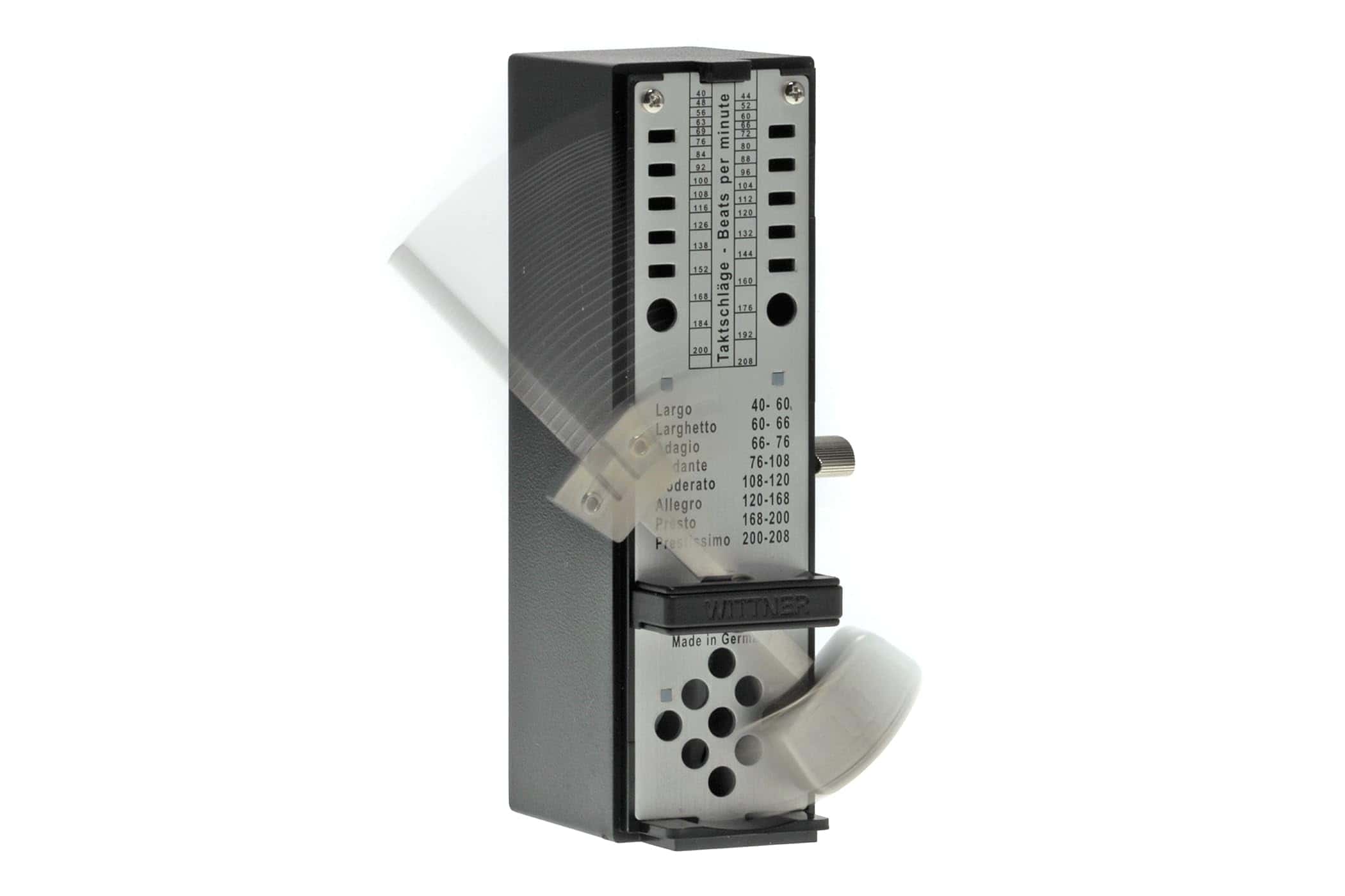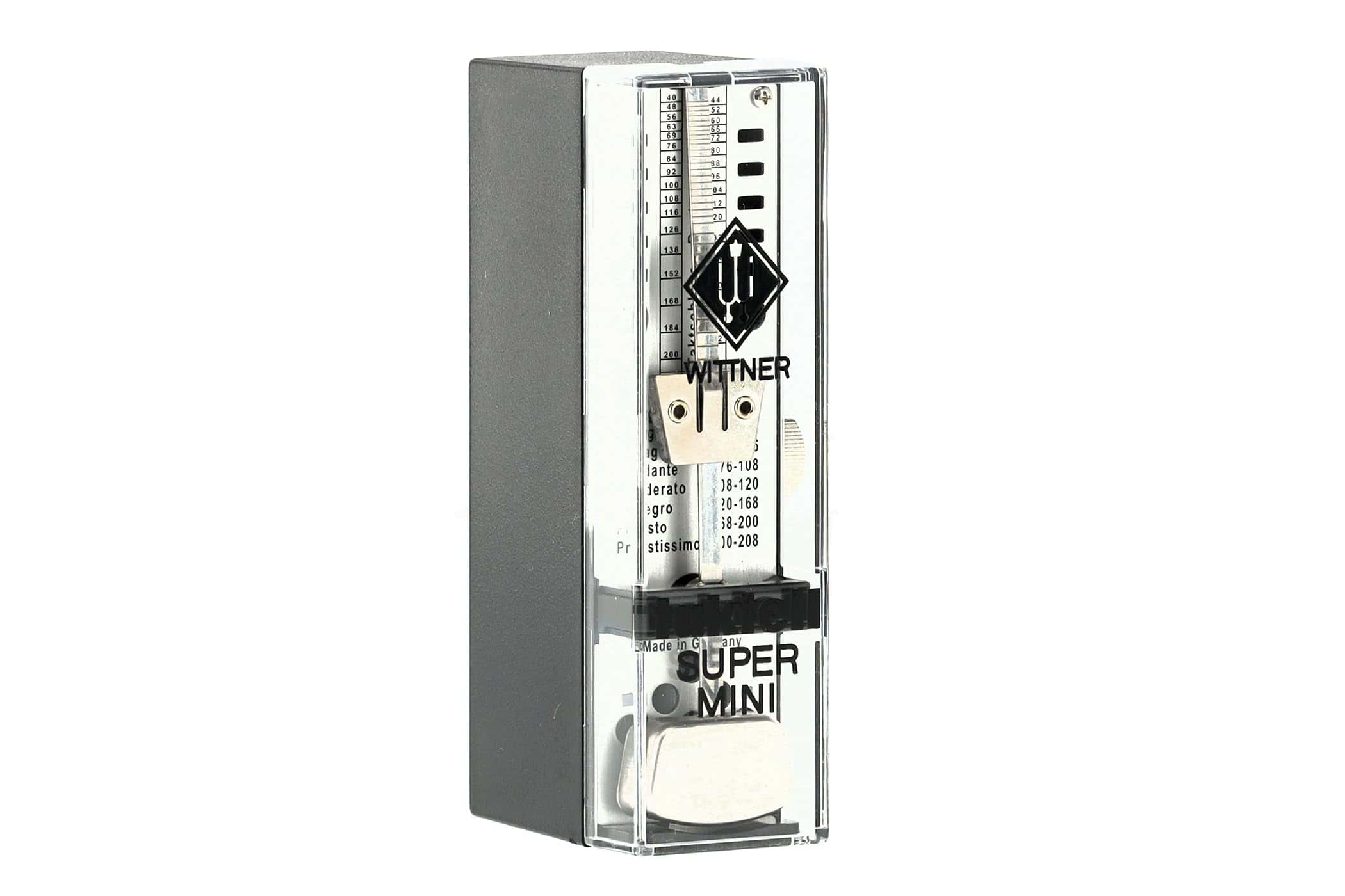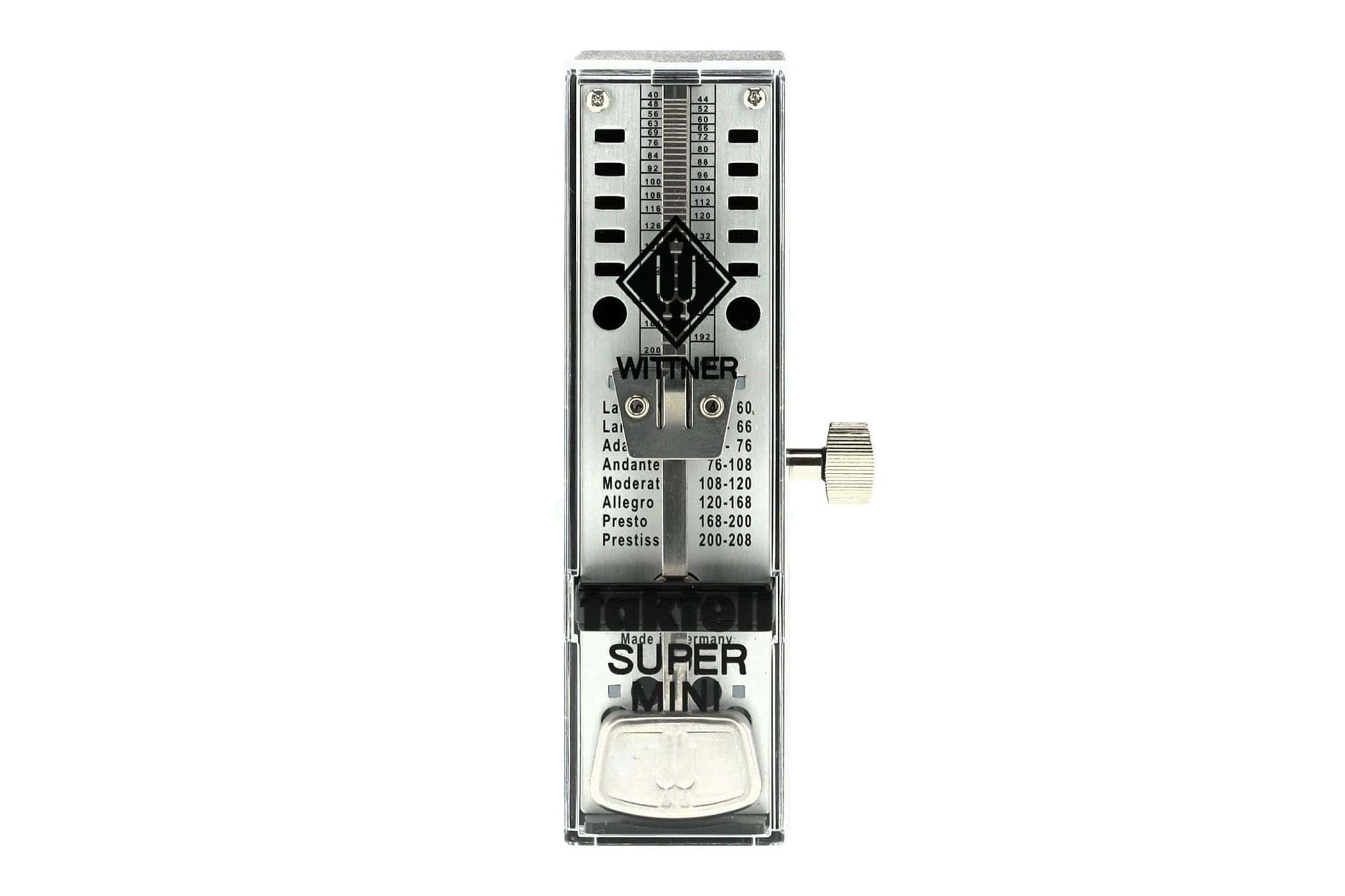 Wittner Metrónomo taktell SUPER-MINI. Color: Negro. Dimensiones del Metrónomo 1.14×1.93×4.09 pulgadas. Metrónomo tradicional de cuerda. Rango de tempo es de 40 a 208 pulsos por minuto. Fabricado con precisión y bonito acabado negro. Uno de los metrónomos de péndulo más pequeños del mundo.