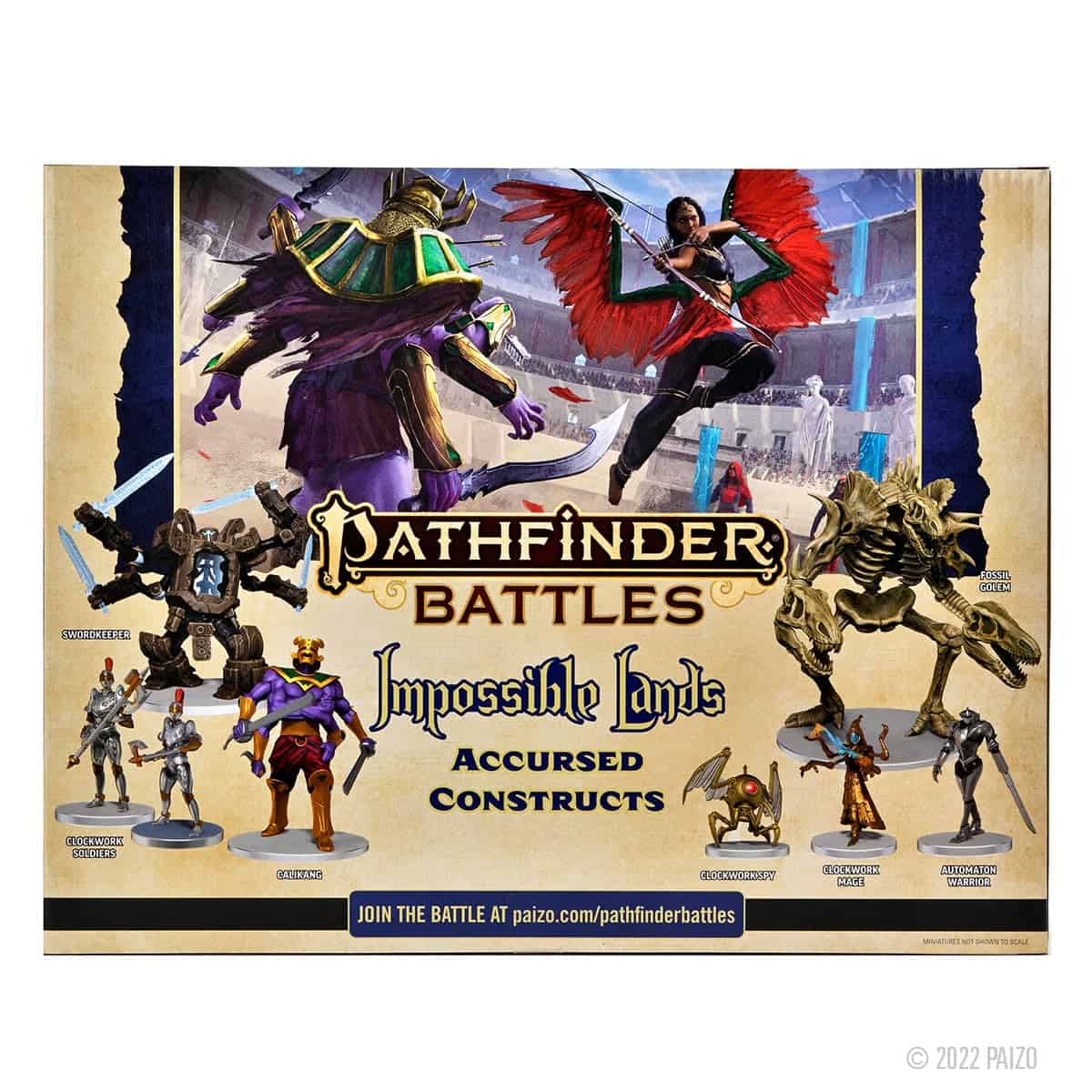 WizKids Pathfinder Battles: Impossible Lands – Set de Construcciones Malditas en Caja, incluye 8 miniaturas totalmente nuevas que representan una emocionante variedad de construcciones malévolas del entorno Impossible Lands de Pathfinder. ¡WizKids, líder de la industria en miniaturas plásticas pre-pintadas de calidad, se complace en dar vida a nuestra última serie de miniaturas de fantasía, Pathfinder: Impossible Lands! Las criaturas destacadas en este set incluyen: Espía de Relojería, Soldado de Relojería 1, Guerrero Autómata, Soldado de Relojería 2, Mago de Relojería, Calikang, Gólem de Fósiles, Guardián de Espadas.