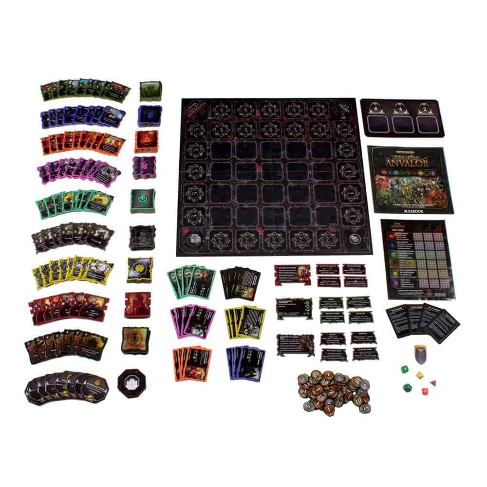 Prepárate para una nueva emoción de Warhammer Age of Sigmar. En The Rise & Fall of Anvalor, tu tarea oficial es ayudar a construir y defender Anvalor junto con las otras facciones. Sin embargo, tu verdadero objetivo es reunir la mayor Influencia y asegurar el dominio sobre Anvalor, incluso si eventualmente podría causar la caída de la ciudad. Reúne la mayor Influencia para tu facción construyendo Edificios de Ciudad y derrotando enemigos durante violentos asaltos. Al final del juego, el jugador que tenga la mayor Influencia sobre la ciudad reina supremo y asegura su dominio sobre The Great Parch! Con más de 180 fichas en total, 9 facciones diferentes (6 facciones de jugadores, 3 facciones enemigas) y 4 variantes de juego (más allá del juego estándar), ¡hay una enorme cantidad de contenido de juego! En la región de Aqshy, incluso si tus aliados inestables colocan sus recursos en el lugar perfecto, tus enemigos mutuos pueden ser fuertes e impredecibles. Construirás recursos para bloquear a tus aliados para que no desarrollen sus mejores opciones, y ellos te devolverán el favor. Debilitarán a los enemigos y tú intentarás dar el golpe final. Cada turno proporcionará muchas opciones, por lo que podrás pivotar a medida que aprendes las estrategias más adecuadas para tu enemigo común y tus aliados. Una cosa es segura: ya sea que Anvalor sobreviva al asedio o no, ¡las cosas seguramente se calentarán! «Me sorprendió lo mucho que disfruté The Rise and Fall of Anvalor y lo temático que se sintió. Cada facción se siente única y tiene habilidades que coinciden con su entorno, y los enemigos se sienten exactamente como deberían. Wizkids ha hecho un trabajo increíble transmitiendo esto en un juego de mesa simplemente con mecánicas y fichas.» – Tech Raptor