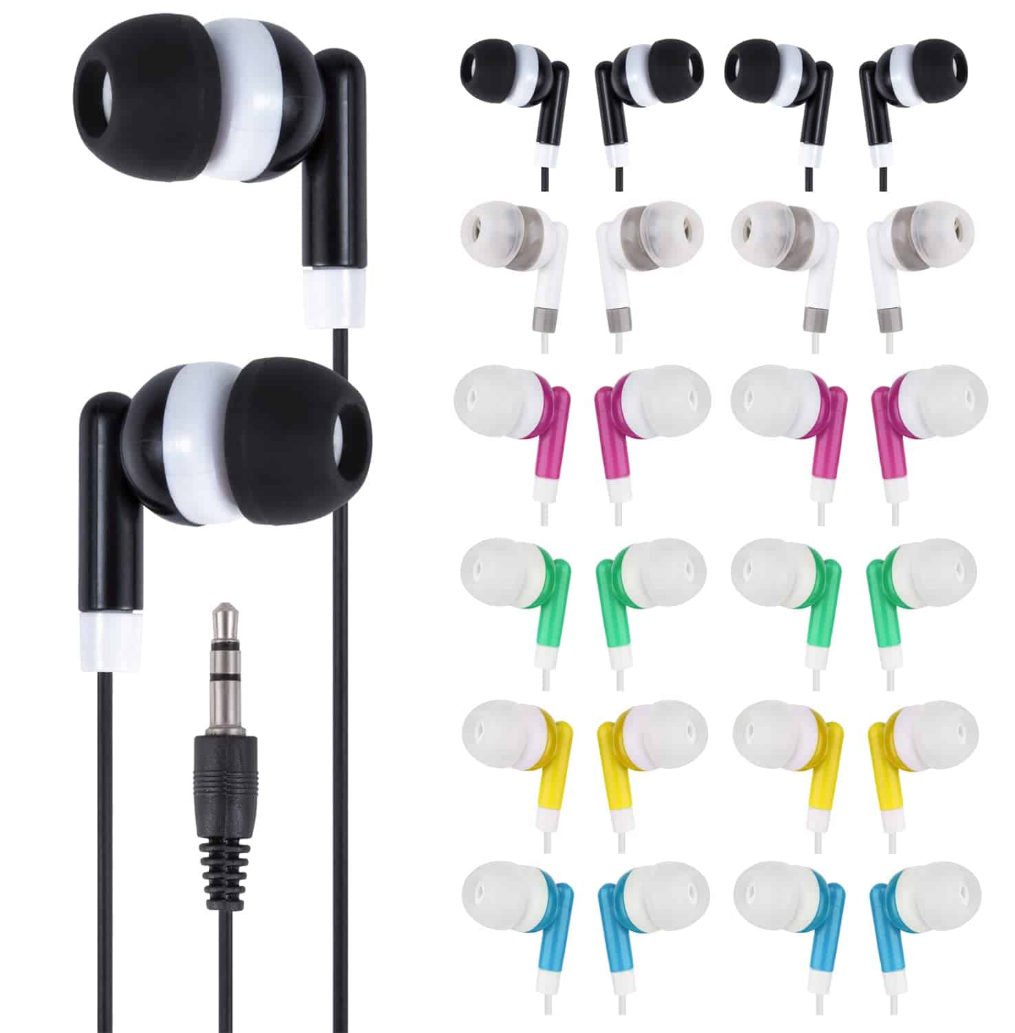 1. MULTIPACK EARBUDS MIXED COLOR WITH 6 COLORS Colorful bulk ear buds available in 6 different colors – black, blue, green, pink, white and yellow. Package include: 50 pieces earphones and 25 pairs 10mm silicone eartips. 2. EARBUDS IN BULK INDIVIDUALLY WRAPPED 50 pack of bulk earbuds, each earbuds with individually poly bag and sealed,convenient and hygienic for you use and bundle bulk packed can be sold at a dollar store. 3. GOOD QUALITY EARBUDS Disposable class set of earbuds for children, no worry kids broken your expensive headphones. Ultra-lightweight earbuds with clear sound quality and durable tangle-free tpe wire, it can be used by students for at least one semester. 4. UNIVERSAL COMPATIBILITY Standard 3.5mm audio jack is compatible with most electronic devices including smartphones, MP3 player, Laptop, Tablets, Audiobooks, Computers, Chromebook, and more. No built-in mic, cable length is 3 feet / 1 meter. 5. WJJITAN SUPPORT 1 Year warranty and quick response customer service