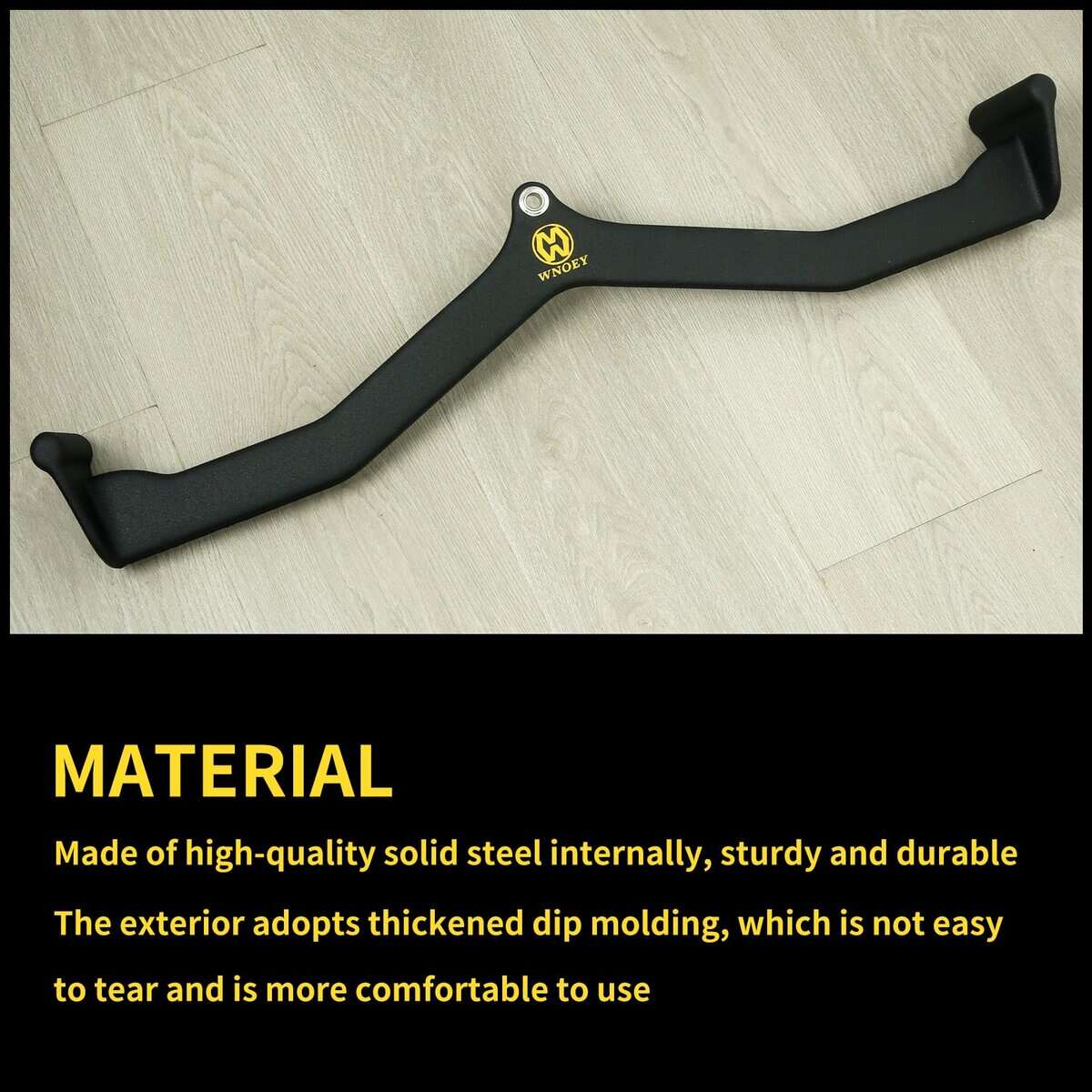 WNOEY Lat Pull Down Bar es el accesorio perfecto para su rutina de ejercicio en casa. Con una construcción de acero sólido de alta calidad y un diseño ergonómico de mango, este accesorio le permite enfocarse en el grupo muscular de la espalda de manera efectiva. Los ganchos universales grandes hacen que sea conveniente de usar en cualquier lugar, ya sea en su hogar o en un gimnasio. El recubrimiento espeso asegura un agarre cómodo y duradero, evitando la oxidación y la incomodidad en las manos. Con una capacidad de tracción de hasta 880 libras, este accesorio es resistente y duradero. Mejore su entrenamiento de tríceps, bíceps, espalda, hombros y abdominales con esta barra de lat pull down de alta calidad. Brindamos un servicio de alta calidad y garantizamos la satisfacción de nuestros clientes. ¡Agregue este accesorio a su rutina de ejercicio hoy mismo!