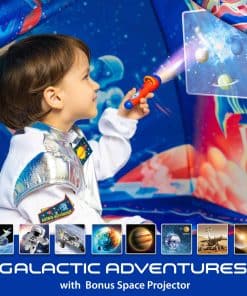 ¡Despega con la tienda de campaña espacial W&O Space Super Dome y lleva a tus hijos en un viaje intergaláctico de diversión y aprendizaje! Esta increíble tienda de campaña de cohete es perfecta para niños de 3 a 12 años que aman el espacio y la aventura. Con el botón de despegue, podrán escuchar sonidos realistas del espacio, incluido un audio de la histórica misión del Apolo. Las luces LED de colores y el proyector espacial los transportarán a las estrellas y más allá, estimulando su imaginación. Hecho de poliéster premium con refuerzos en el techo y bolsillos del piso, esta tienda de campaña es duradera y segura para el juego en interiores y exteriores. Además, viene con un emocionante Paquete de Actividades de Cohetes Imprimible que incluye accesorios de fotomatón espacial, un sistema solar recorta y pega, y actividades educativas de colorear. ¡Haz que la diversión y el aprendizaje despeguen con la tienda de campaña espacial W&O Space Super Dome!