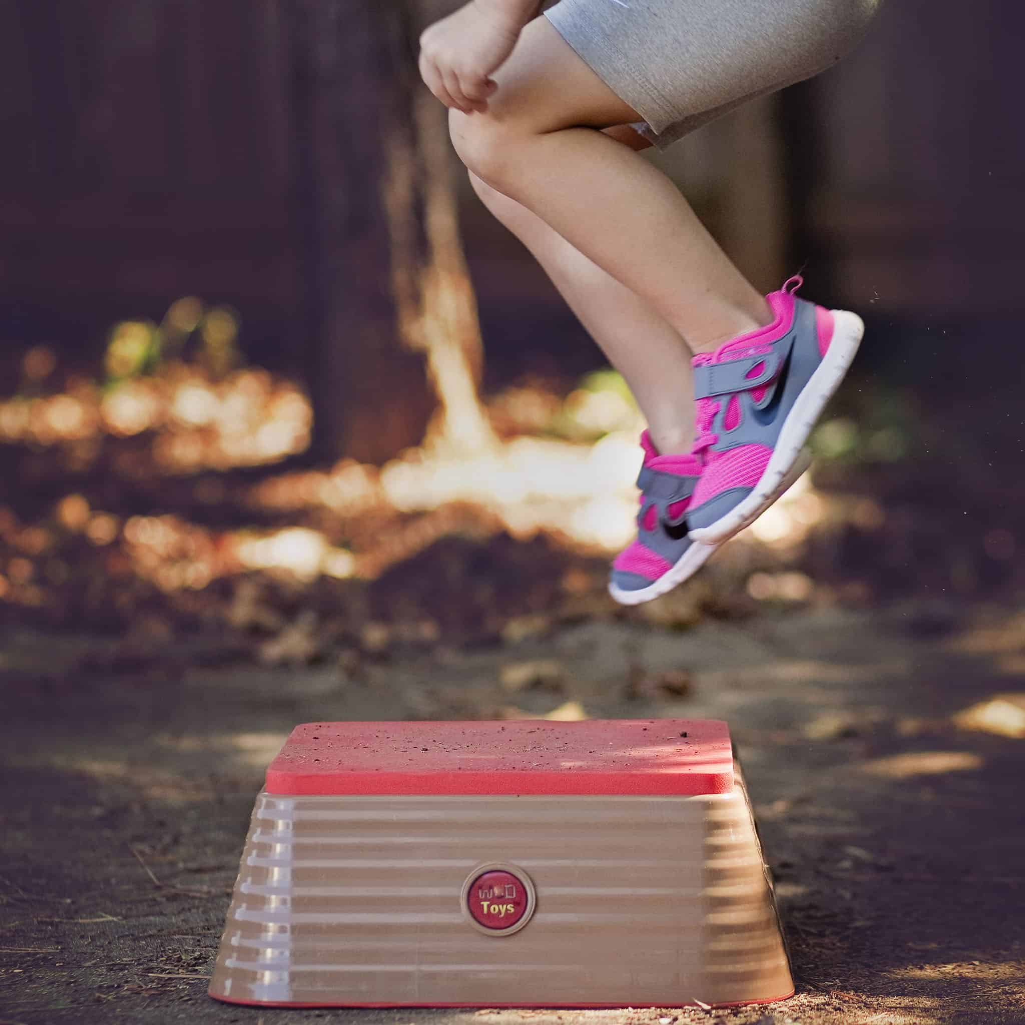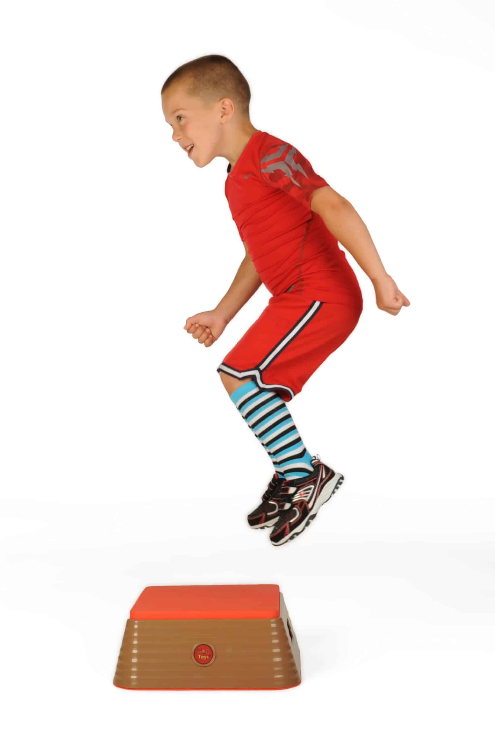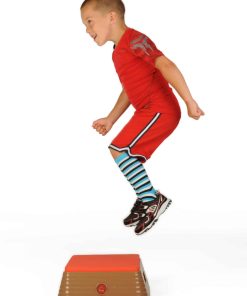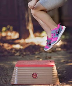 1. Su propia Caja de Salto Plyométrica! 5.5 pulgadas de alto y 14.5 pulgadas de ancho con revestimiento de caucho suave. 2. Fondo de caucho antideslizante con asas a cada lado como una Caja de Salto real. 3. ¡A ellos les encantará imitar los saltos en caja justo a tu lado! 4. Para edades de 3 a 6 años. 5. Peso máximo de 60 libras.