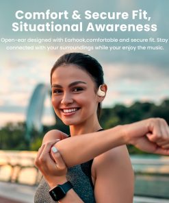 Los auriculares de oído abierto WOINNMM W01 son una opción perfecta para aquellos que buscan comodidad y calidad de sonido superiores. Presentan tecnología de acústica direccional de conducción de aire que proporciona un audio más rico y envolvente, sin los inconvenientes de los auriculares intrusivos tradicionales. Con un diseño ergonómico con ganchos para las orejas, estos auriculares garantizan un ajuste seguro y cómodo para largas sesiones de escucha. Su diafragma sobredimensionado de 16,2 mm recubierto de titanio produce graves potentes y audio espacial verdadero, perfecto para sumergirse en la música. Además, con su clasificación IPX6 a prueba de agua y resistente al sudor, estos auriculares son ideales para cualquier rutina de ejercicio, desde correr hasta entrenamientos intensos. La duración de la batería es impresionante, con 8 horas de reproducción con una sola carga y un total de 30 horas con el estuche de carga portátil. La tecnología Bluetooth 5.3 garantiza una conexión estable y de baja latencia, mientras que los micrófonos con cancelación de ruido proporcionan llamadas cristalinas. Ya sea para videollamadas, escuchar música, o simplemente mantenerse conectado, estos auriculares de oído abierto son versátiles y se adaptan a múltiples situaciones. Disfruta de un sonido excepcional y la comodidad durante todo el día con los auriculares WOINNMM W01.