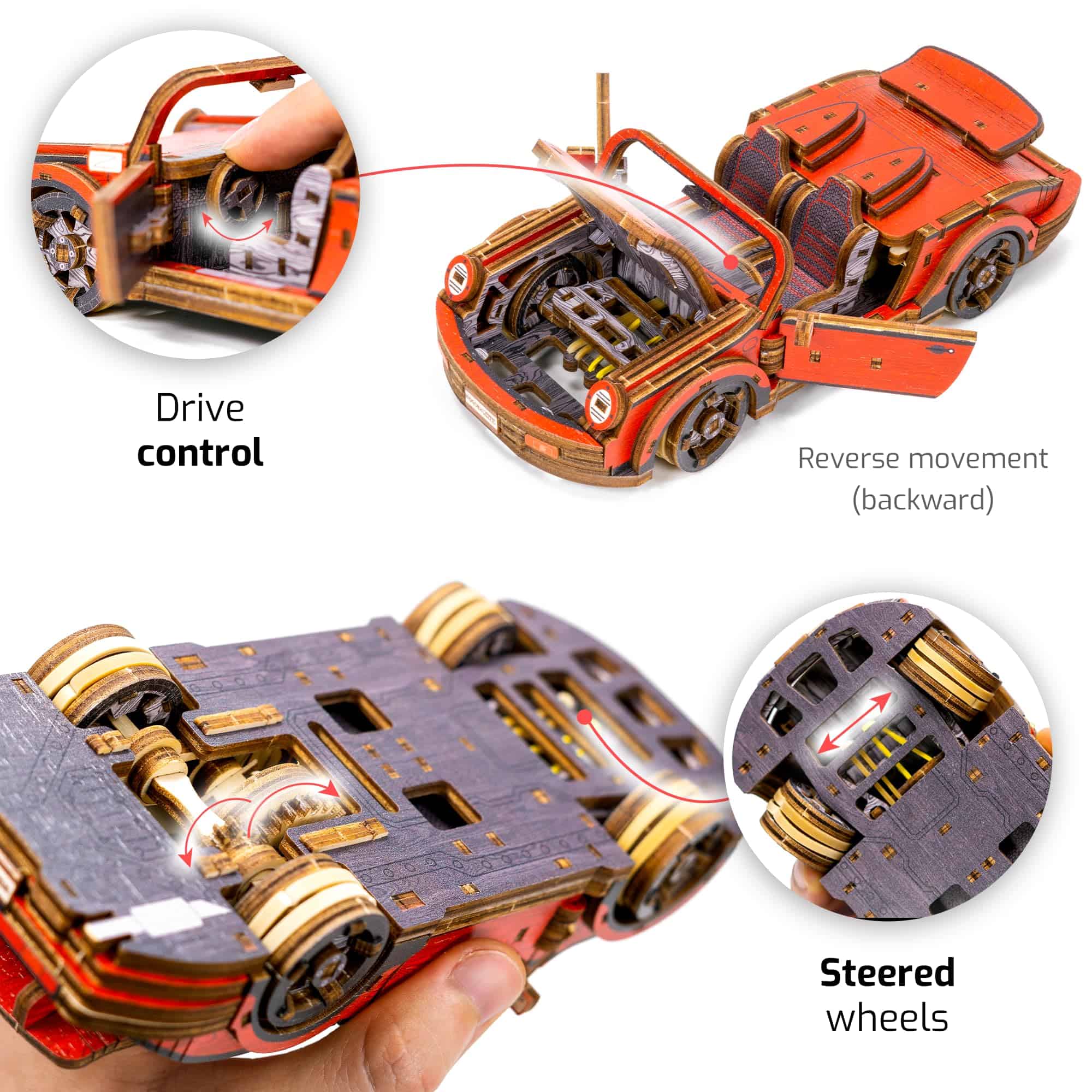 7. Corre, Compite, Maravíllate – No se trata solo de admirar una belleza estática. Impulsado por su motor de goma, este coche deportivo de madera recorre toda una distancia de un metro. Dale cuerda, obsérvalo correr y déjate cautivar por su dinámico movimiento