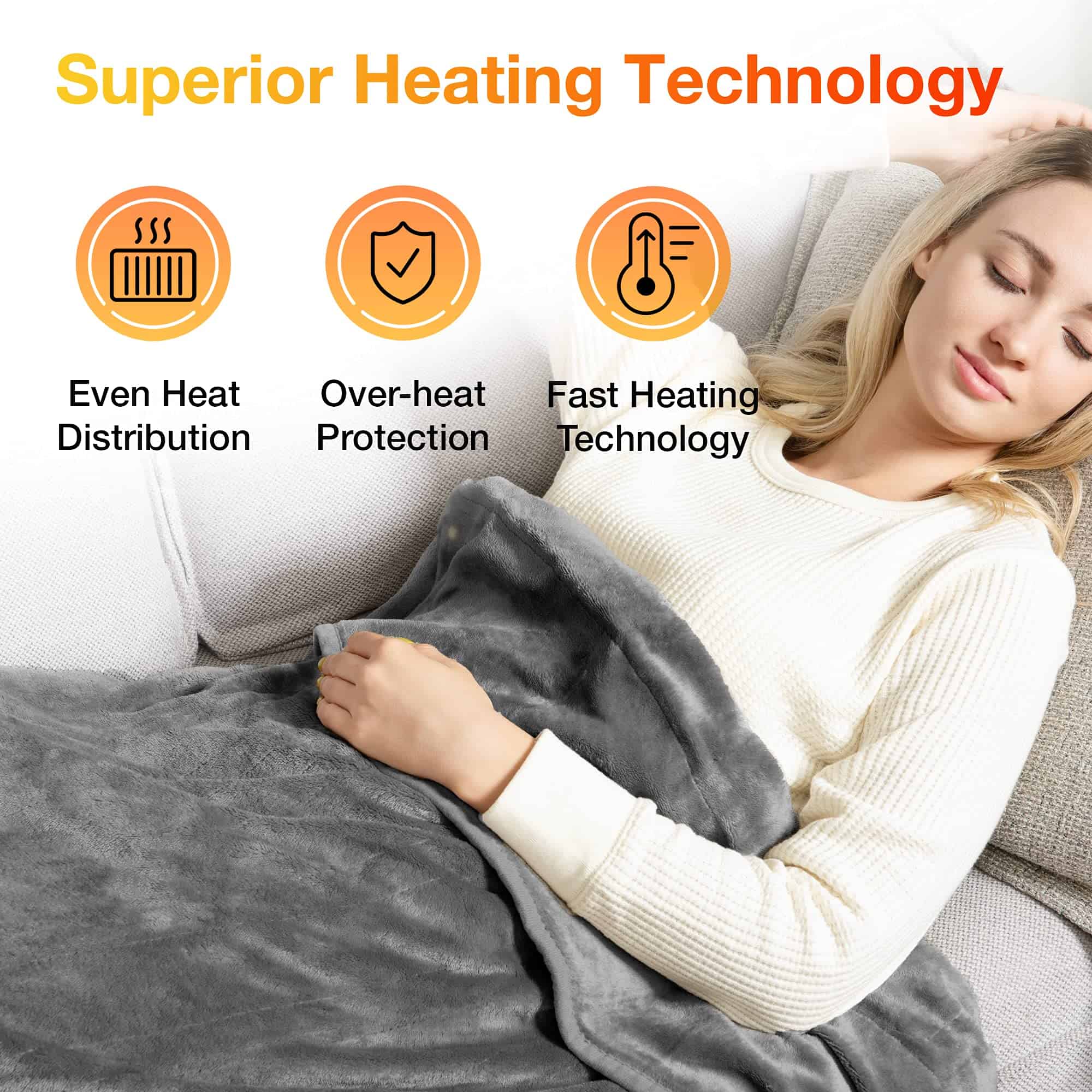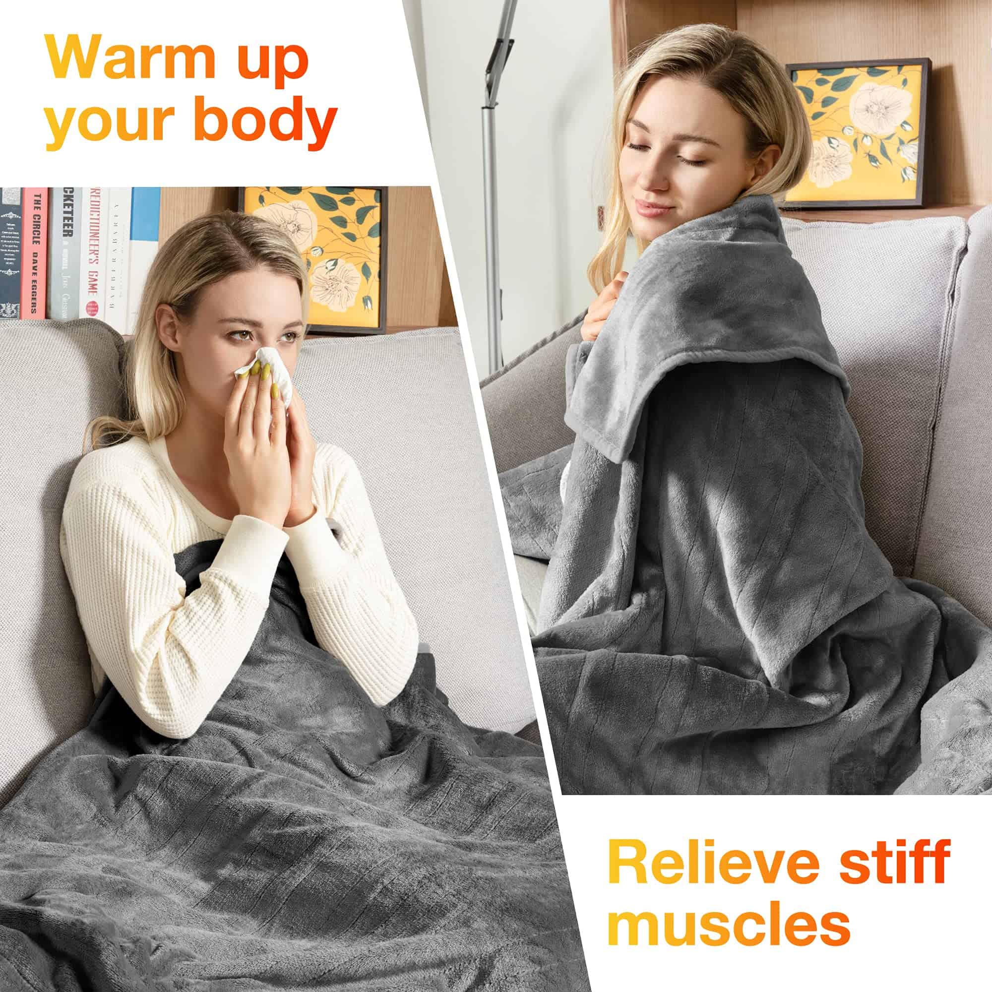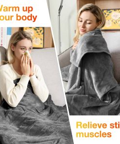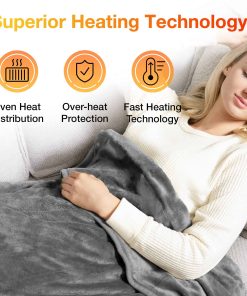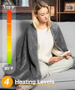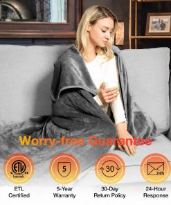 WOOMER [Garantía de 5 años] Manta Eléctrica Calienta Mantas (50″x 60″), Suave Franela Calentadora Rápida, 4 Niveles de Calentamiento & Apagado Automático de 4H, Lavable a Máquina, Protección contra Sobrecalentamiento la manta calentadora está hecha de franela que es comparativamente delgada y transpirable (pelo corto de 4 mm); Se siente suave y suave en la piel para brindarle la máxima comodidad; Lavable a máquina a 40 C para mantener su mejor condición. 2. Tecnología de Calefacción Superior: 4 niveles de calefacción desde 86 F a 113 F están disponibles. Esta manta eléctrica tiene alambres de calefacción de doble espiral incorporados que se colocan en patrones en forma de U para una distribución uniforme. La tecnología de calefacción rápida brinda calor instantáneo. 3. Protección de Seguridad: Certificado por ETL; Esta manta calentadora está especialmente diseñada con protección contra sobrecalentamiento para evitar accidentes; El apagado automático de 4h le permite dormir o descansar de manera segura sin tener en cuenta el frío. 4. Diseños Amigables para el Usuario: Esta manta calentadora está disponible en varios tamaños y colores; Un botón para un fácil control; Cable largo para llegar a cualquier enchufe cercano; Lavable a máquina a 40 C después de desconectar el controlador. 5. Compra Sin Problemas: Disfrute de un servicio postventa confiable y cálido en nuestra manta eléctrica, con garantías de respuestas rápidas a todas las consultas