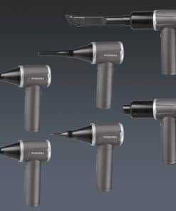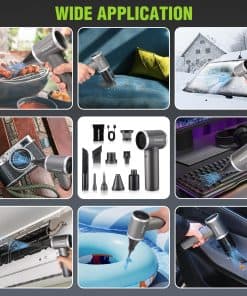 Equipado con 6 boquillas intercambiables y 2 cepillos, este soplador de aire eléctrico es ideal para una limpieza todo en uno. Elimine fácilmente el polvo de PCs, teclados, cámaras, interiores de automóviles y electrodomésticos. Más allá de la limpieza, también es perfecto para inflar colchones de aire, eliminar hojas o avivar fogatas, por lo que es una herramienta esencial para el hogar, la oficina y aventuras al aire libre.
