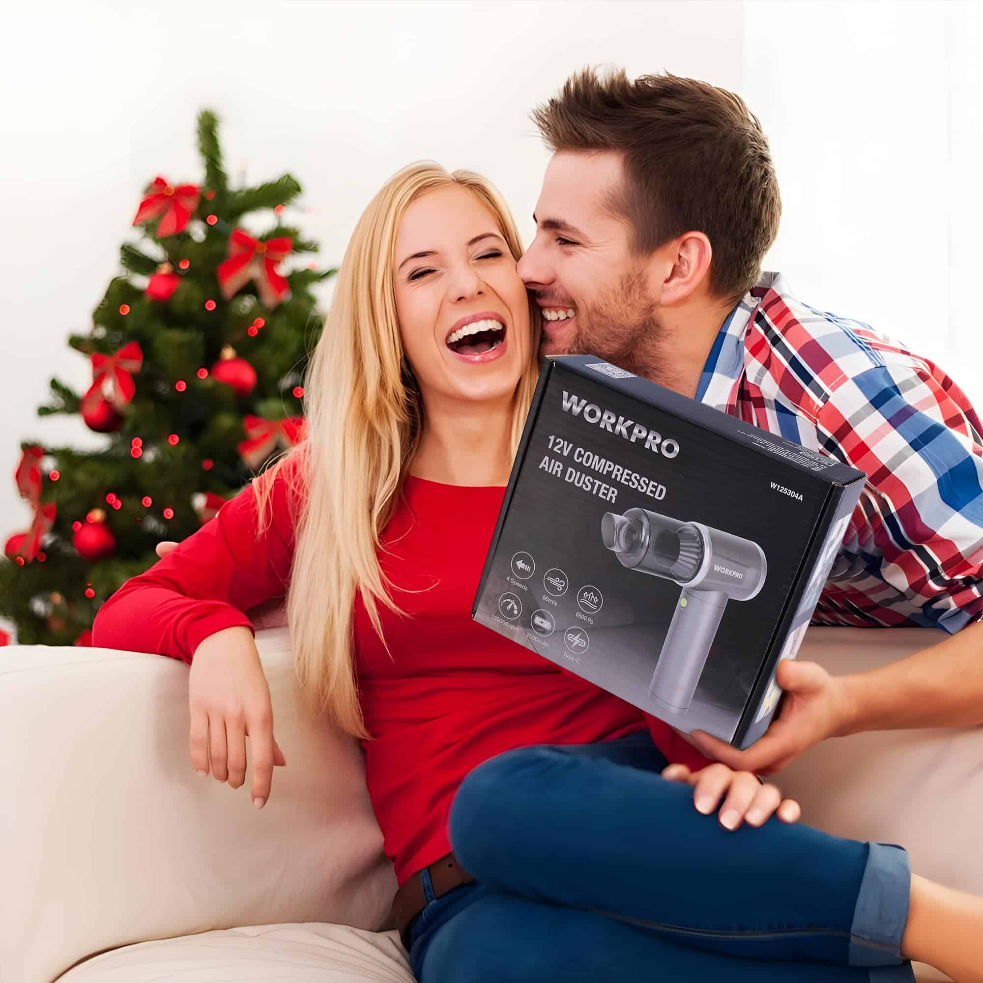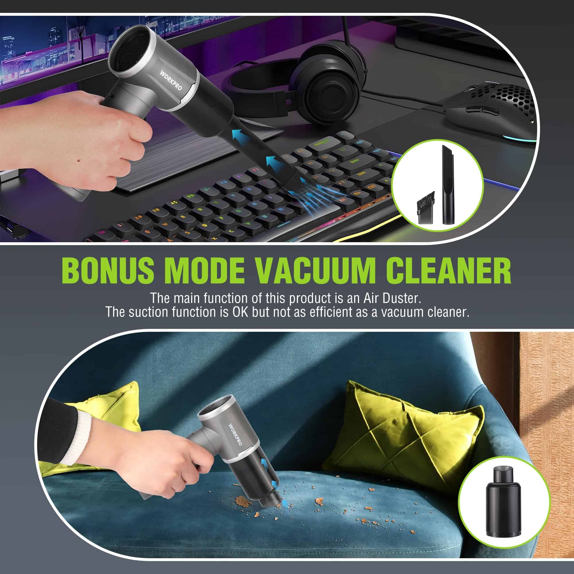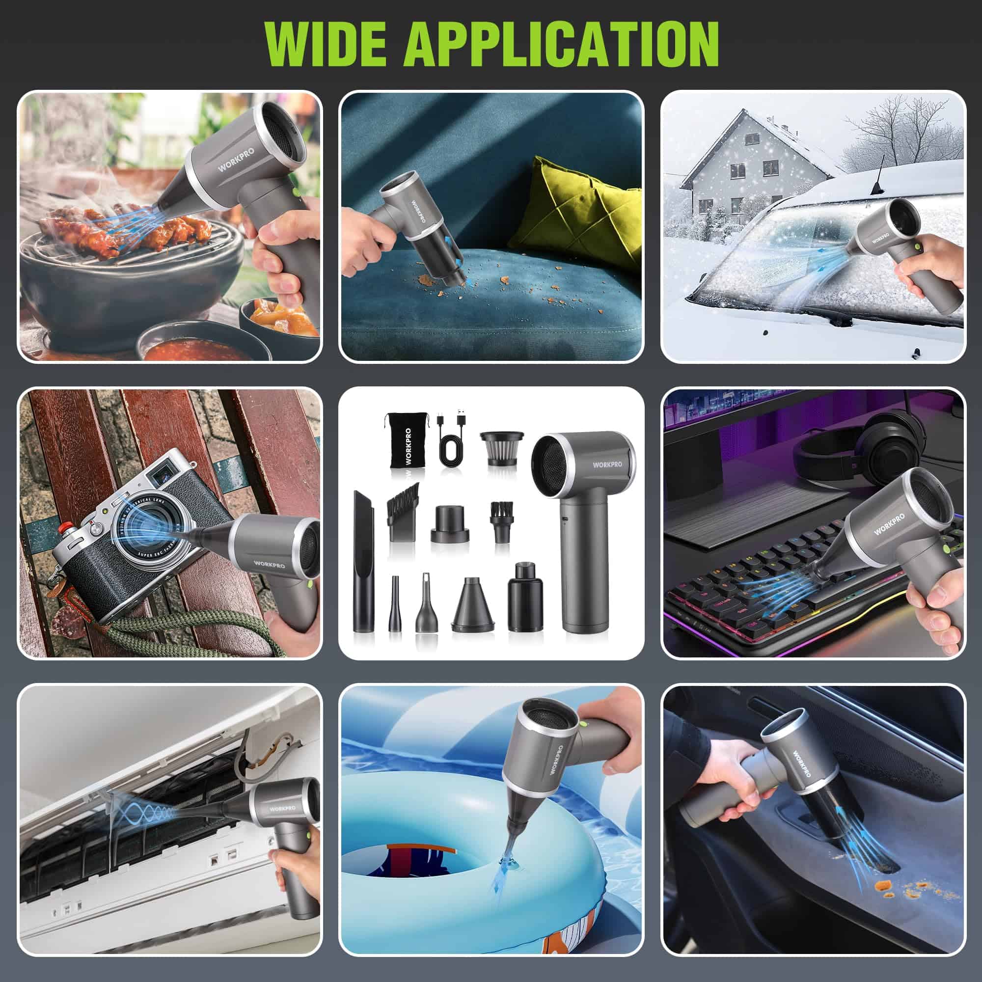 WORKPRO 12V Electric Air Duster-120,000RPM Súper Potente Soplador de Aire Comprimido, Motor sin escobillas Recargable Limpiador Duradero, Soplador de Polvo Ajustable de 4 marchas para Computadora, Teclado de PC, Electrónica, Automóvil…