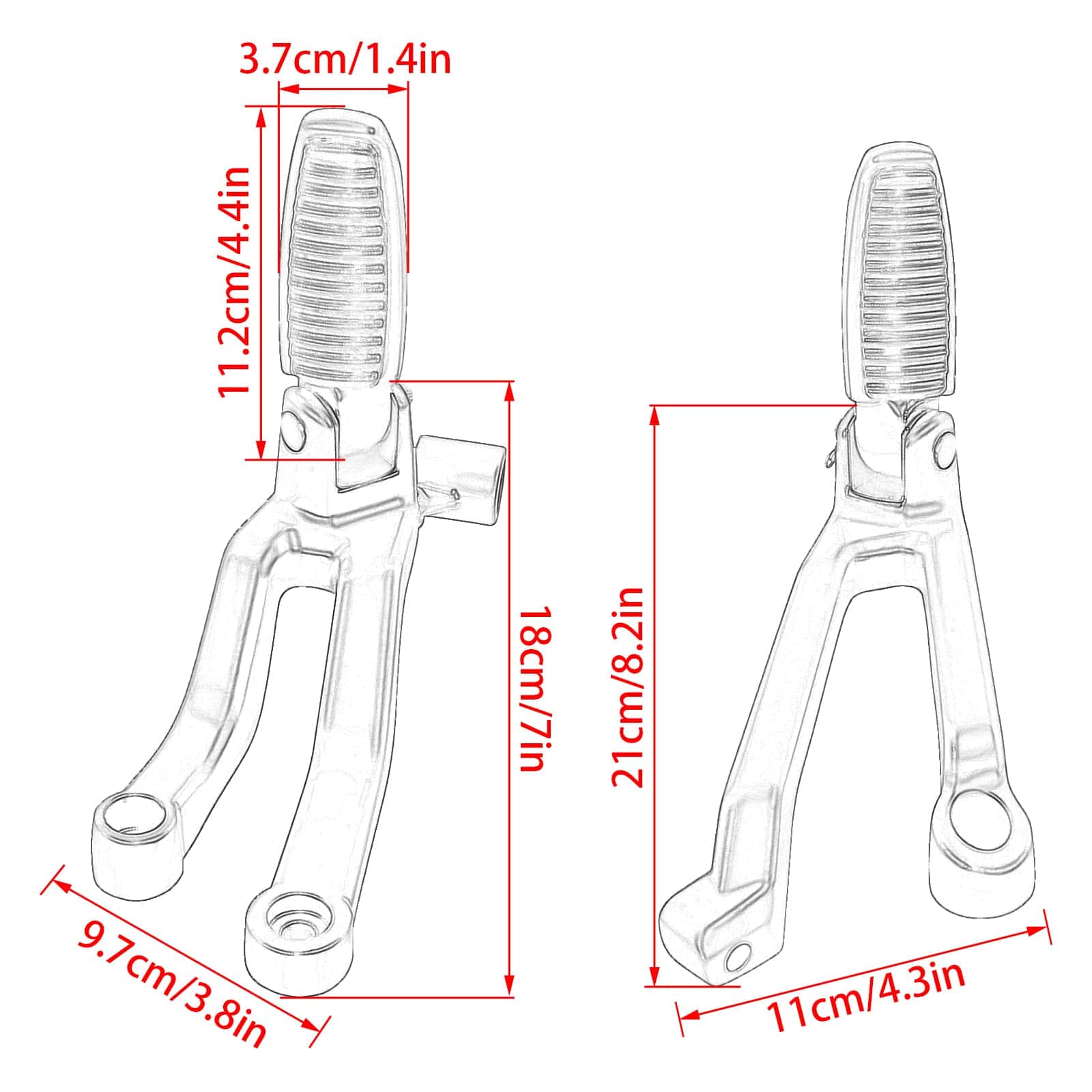 Hecho de aluminio premium y goma antideslizante amortigua, este soporte para pie de pasajero trasero es duradero y resistente, proporcionando soporte confiable para una fácil instalación. El paquete incluye 1 set de soportes para pie de pasajero trasero de motocicleta y hardware de montaje (la instrucción no está incluida). Compatible con Harley Nightster 975 RH975 2021 2022 2023 2024. Por favor, confirme el año y modelo antes de comprar.